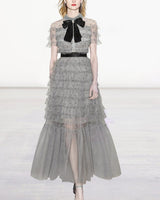 Laurie Lantern Sleeve Ruffles Elegant Party Mesh Dress