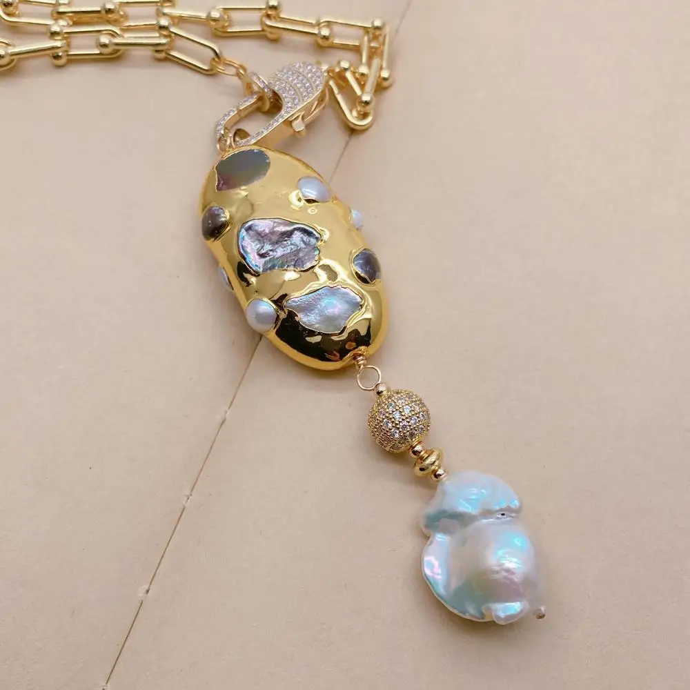 17x23mm White Baroque Pearl Freshwater Multi Color Pearl Pendant 26x50mm Gold Plated Chain Necklace
