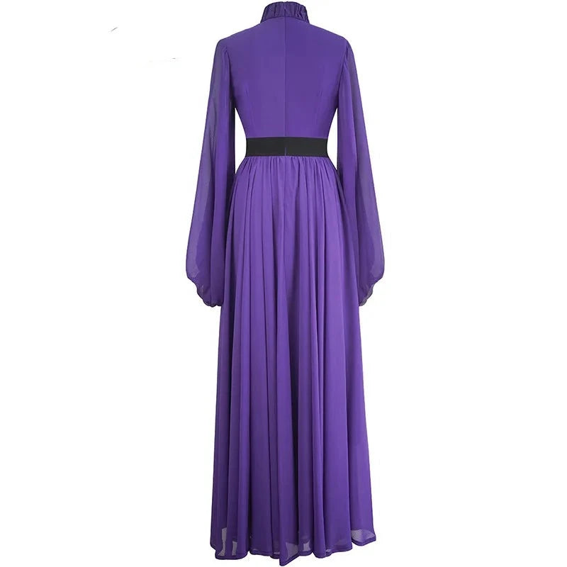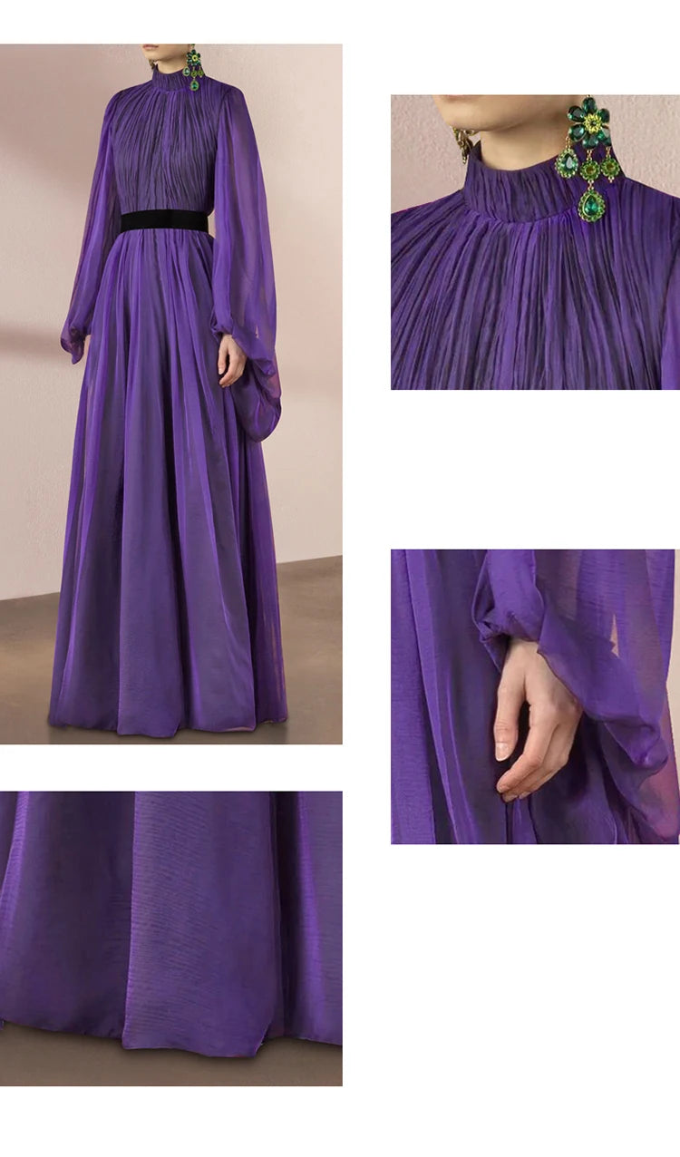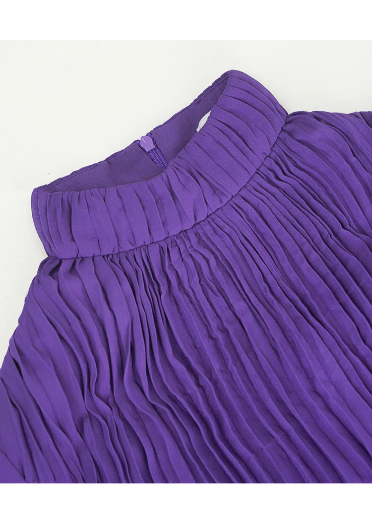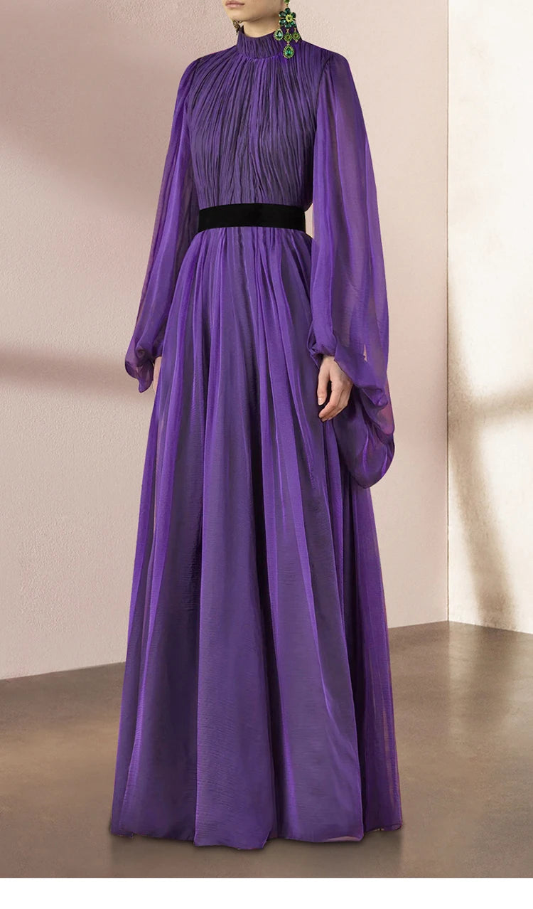 فستان طويل ذو طيات نحيفة وخصر مطاطي باللون الأرجواني من Asher