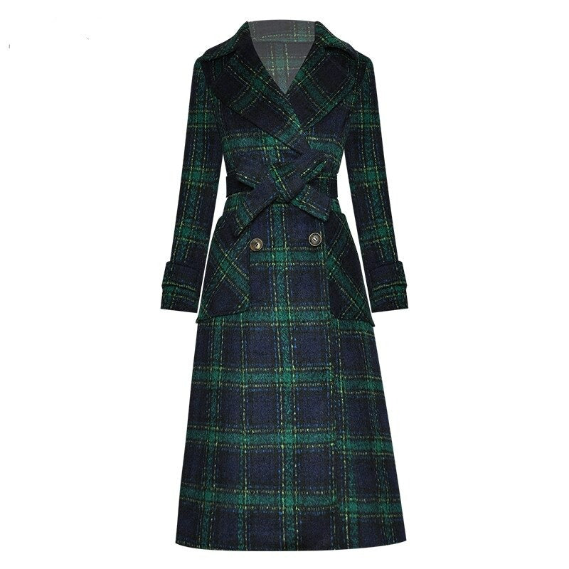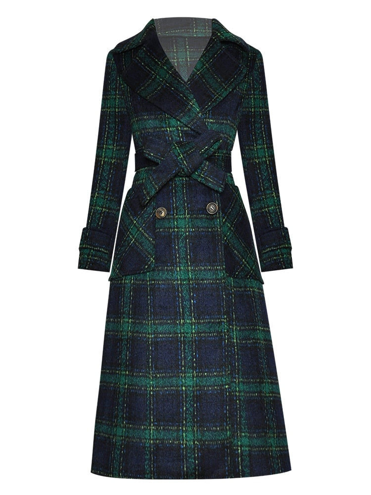 معطف منقوش بأكمام طويلة من Azar مع أربطة مزدوجة الصدر للحفاظ على الدفء