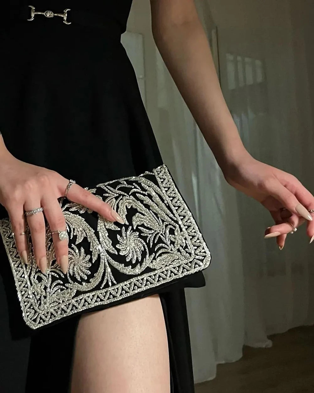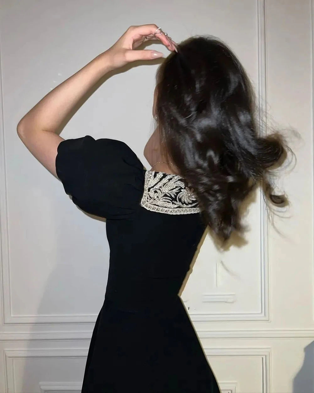 فستان Vanilla Vogue أسود بفتحة رقبة على شكل حرف V مع تطريزات وفتحات