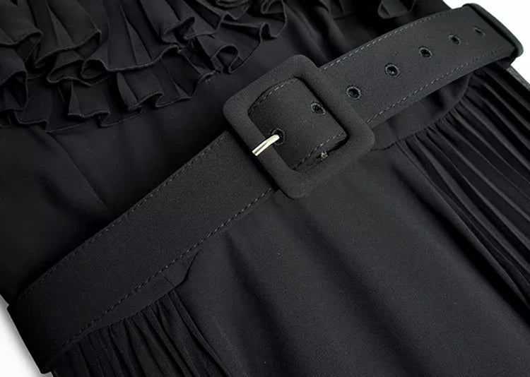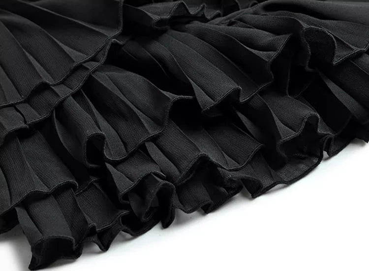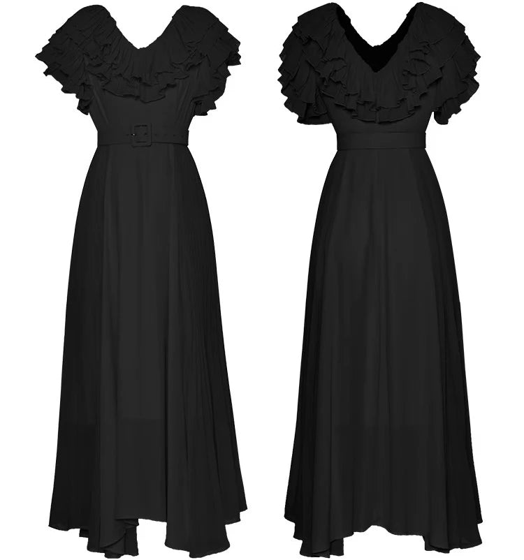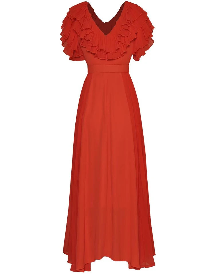 فستان Kaydence بلون سادة بأكمام قصيرة ورقبة على شكل حرف V وحواف مكشكشة وأربطة