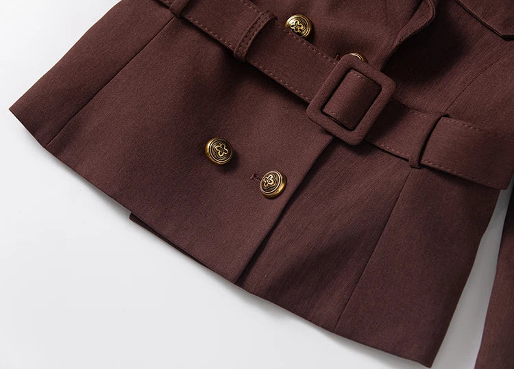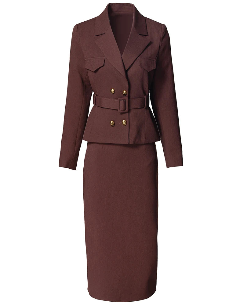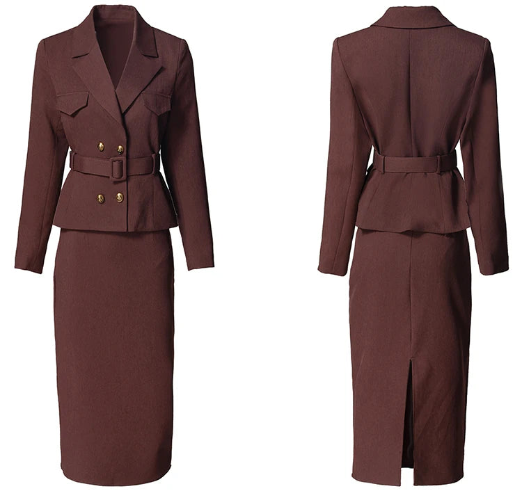 طقم مكون من قطعتين من بلوزة ذات صدر مزدوج وتنورة ضيقة لمكتب السيدات