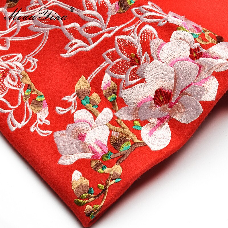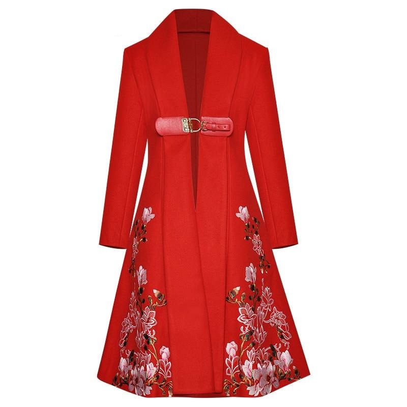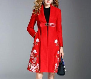 V-neck Embroidery Runway Windbreaker Coat