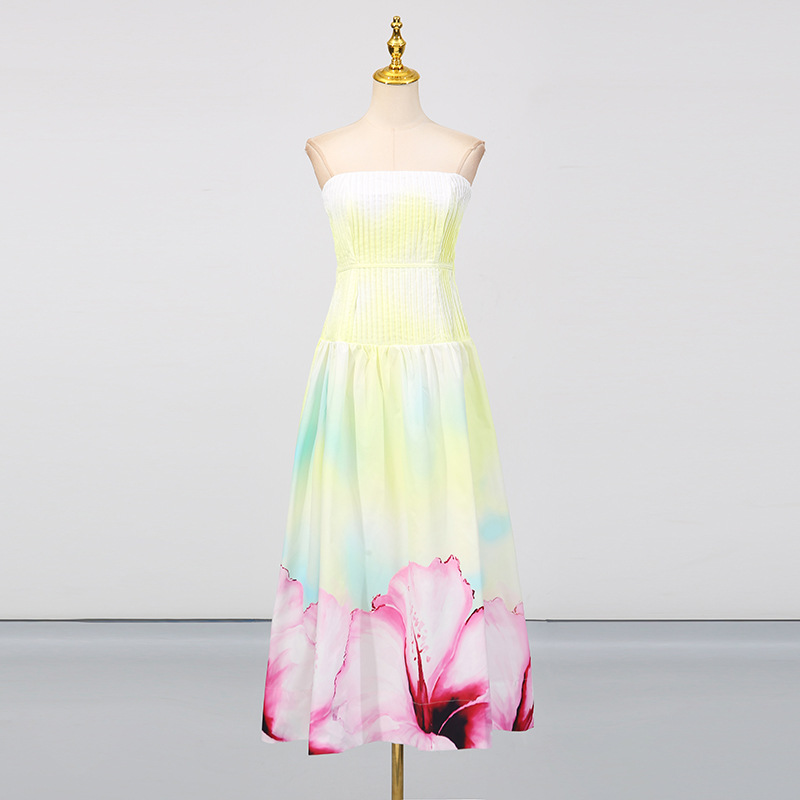 Amelia Trendy Sexy Strapless Dress Fashion Floral Print Dress