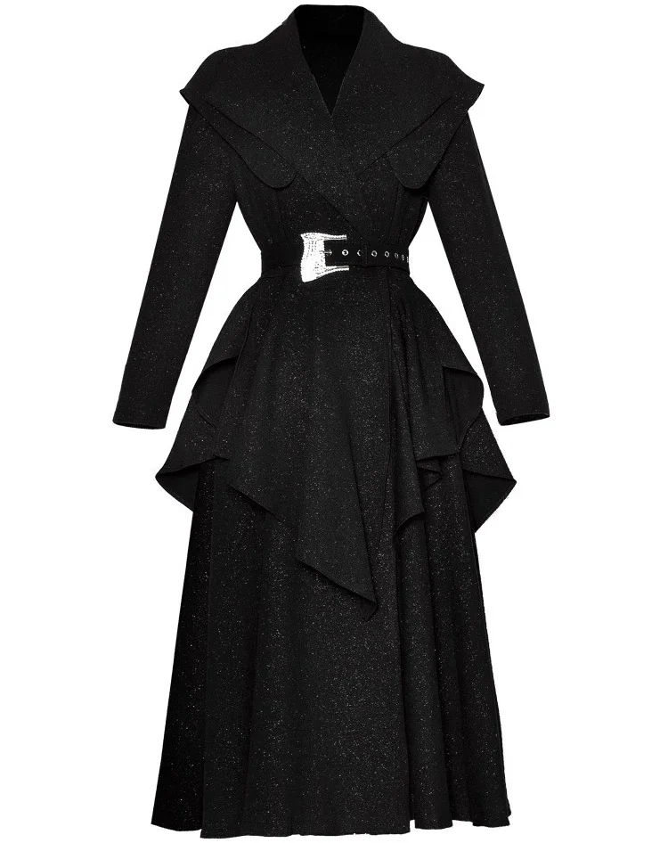 Elora Turn-Down Collar Long-Sleeved Flounced Edge Splicing Dress