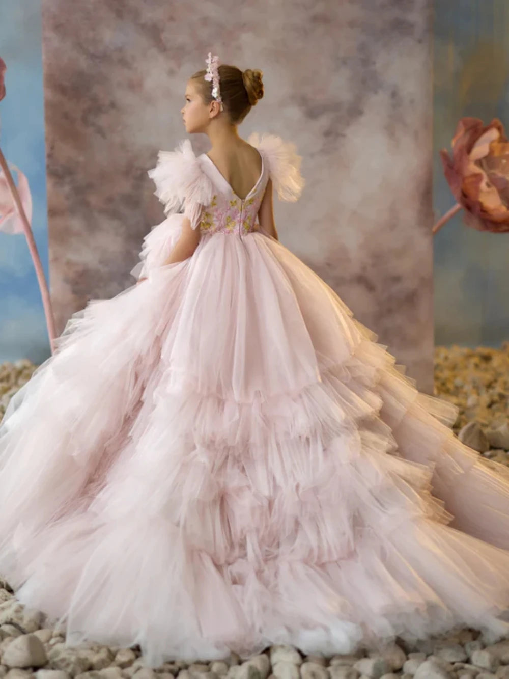 Ginary Luxurious Beaded Tiered Tulle Long Wedding Party Gown Dress