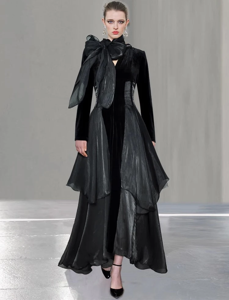 Mason Ruffle Splicing Slim Fit Dress with Bow scarf