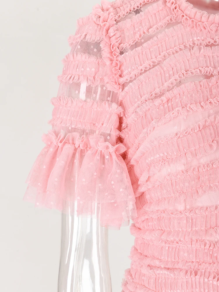 Faye Lace Tiered Dress Elegant Solid Slim Dress