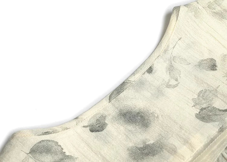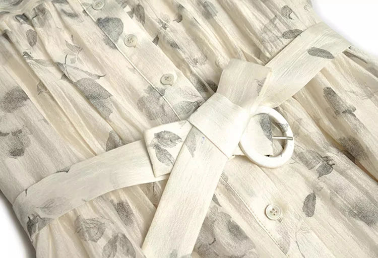 Tallulah Short-Sleeved Single-Breasted Lace-UP Ink Wash Print Commuter Midi Dress