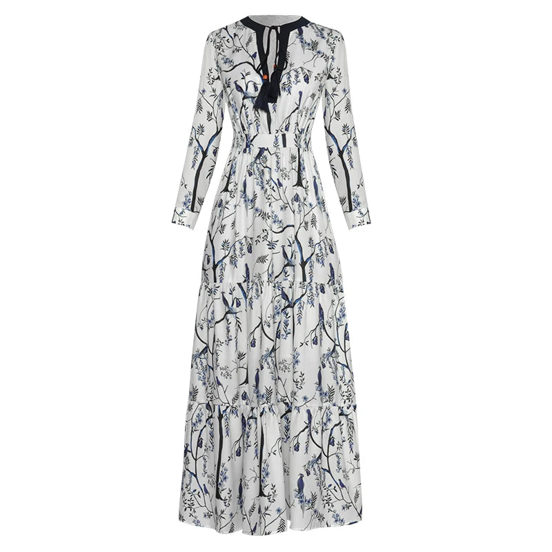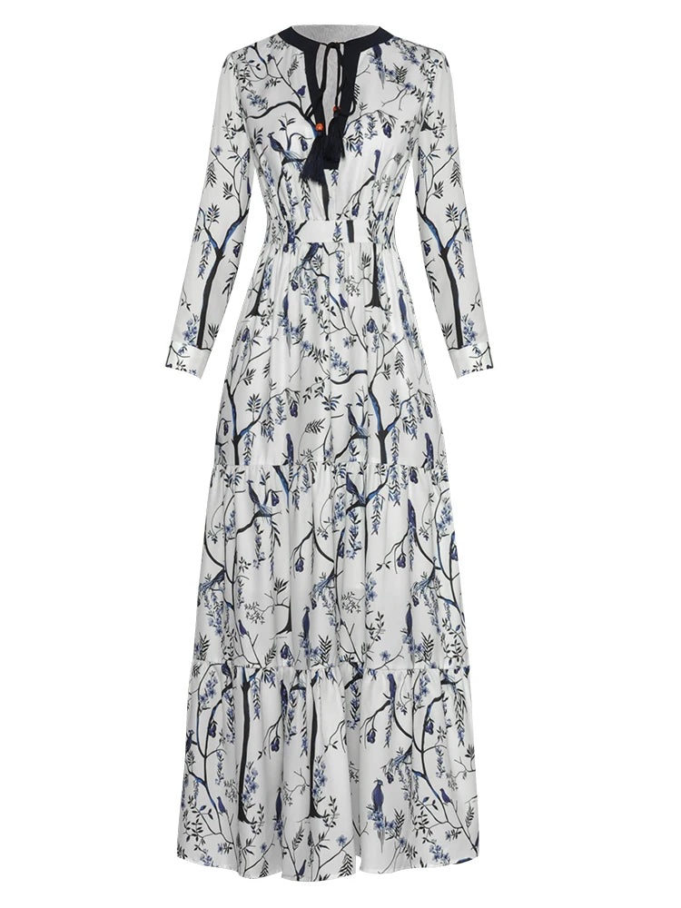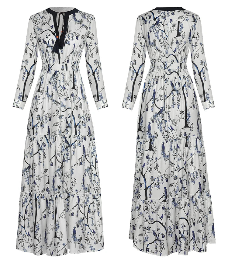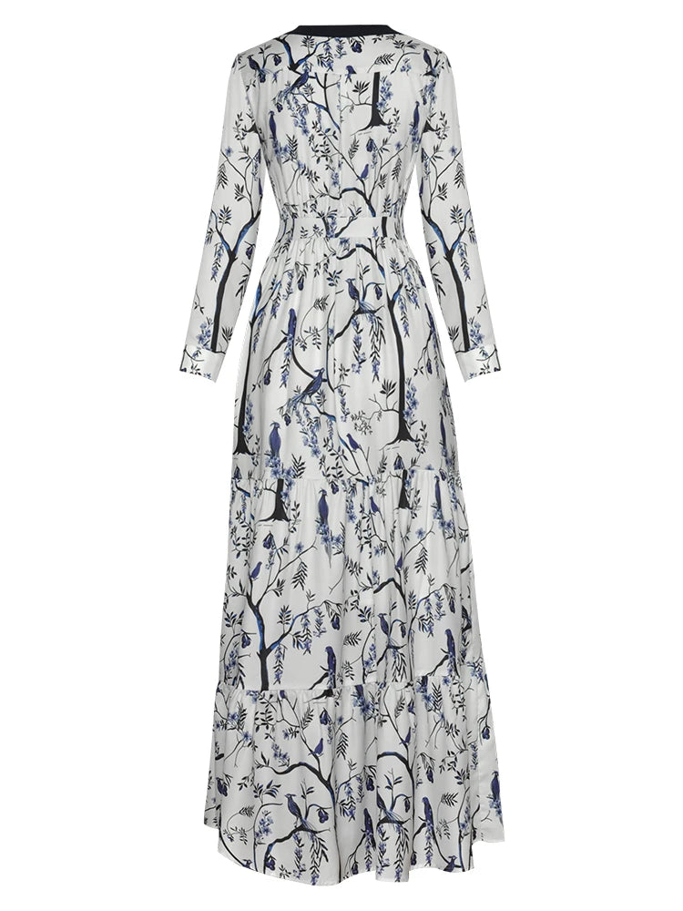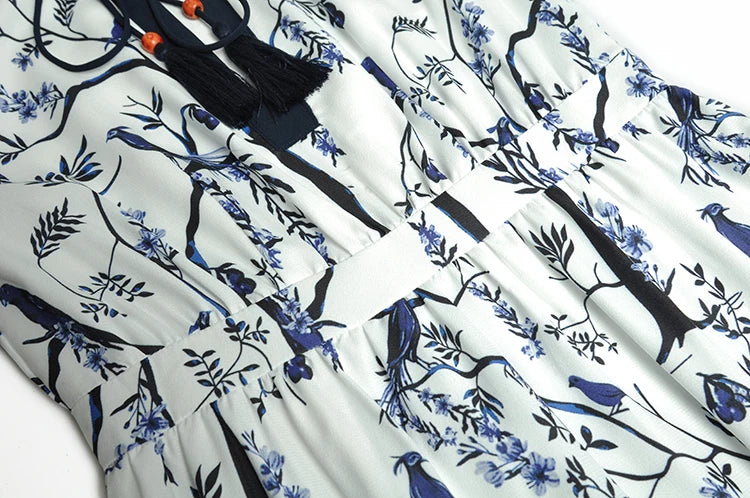 London Vintage Print Ruffles Dress