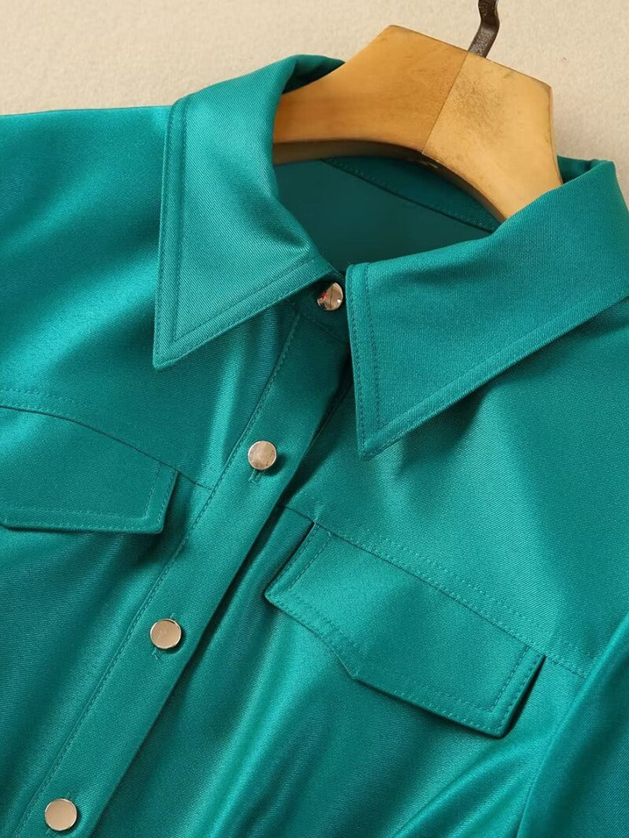 Lapel single-breasted belt mid-waist large hem mid-length Dress