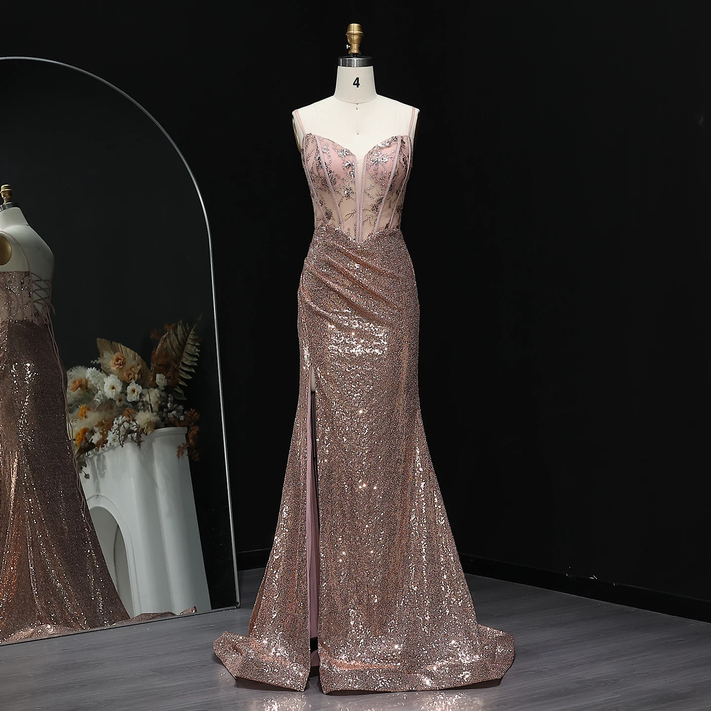 Athena Sequined Corset Sheer Prom Dress with Slit