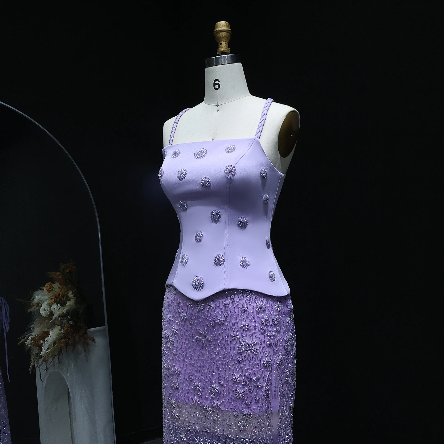 Chic Two Pieces Evening Dress with Spaghetti Strap