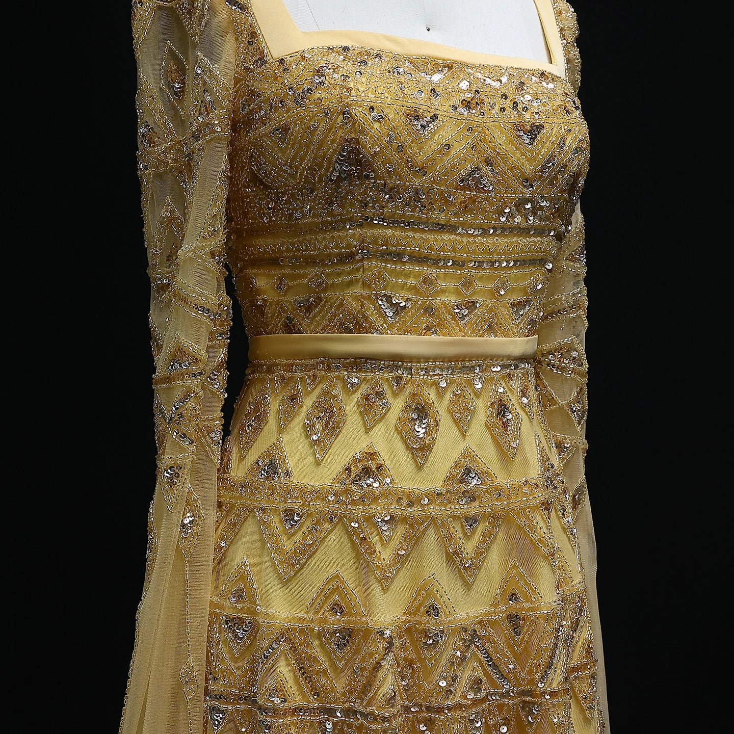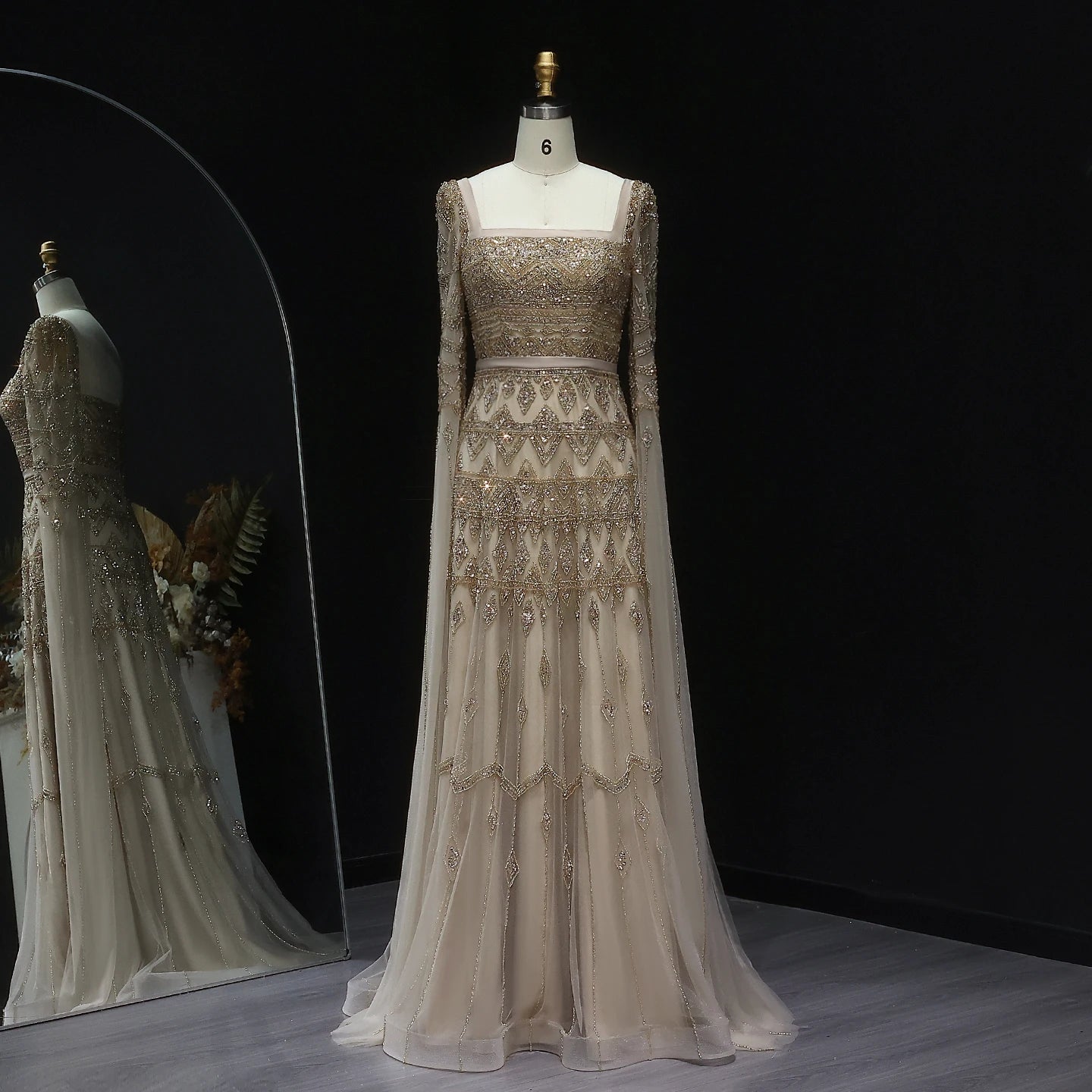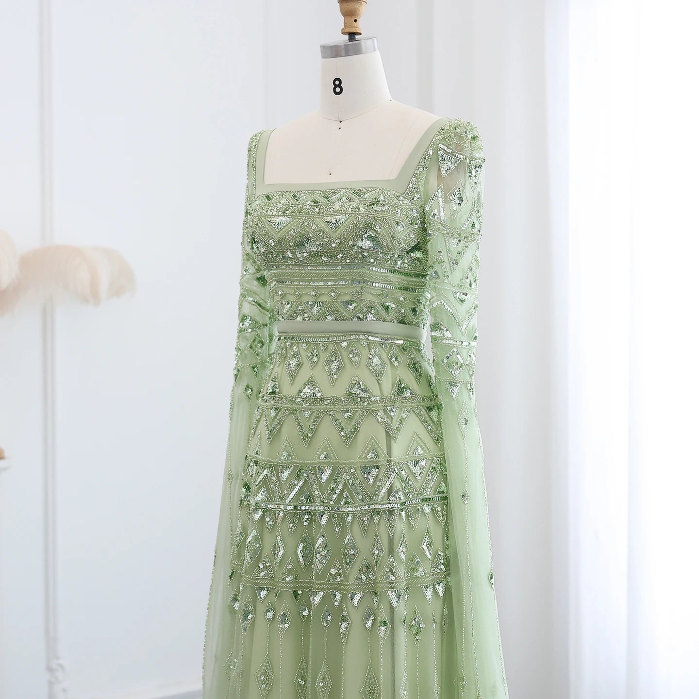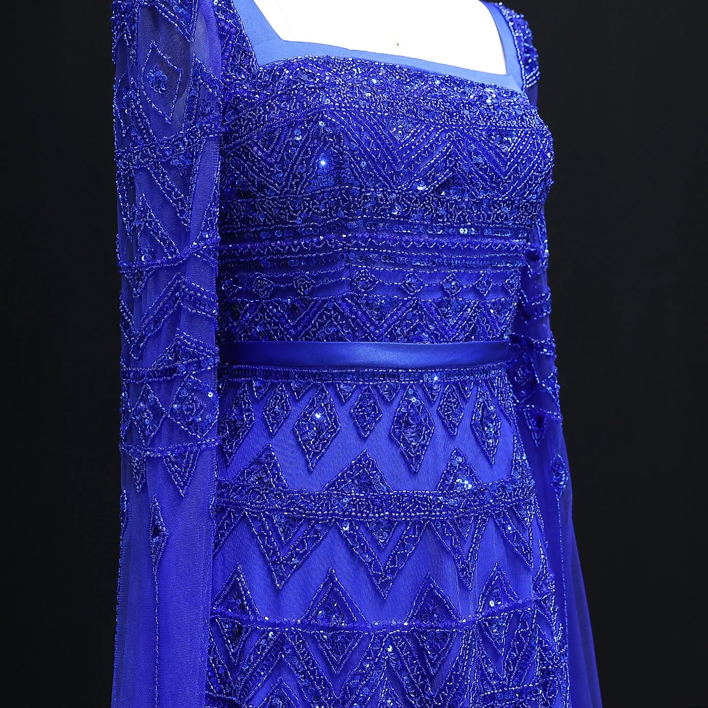 Cristalyn Arabic Burgundy Evening Dress with Cape Sleeve