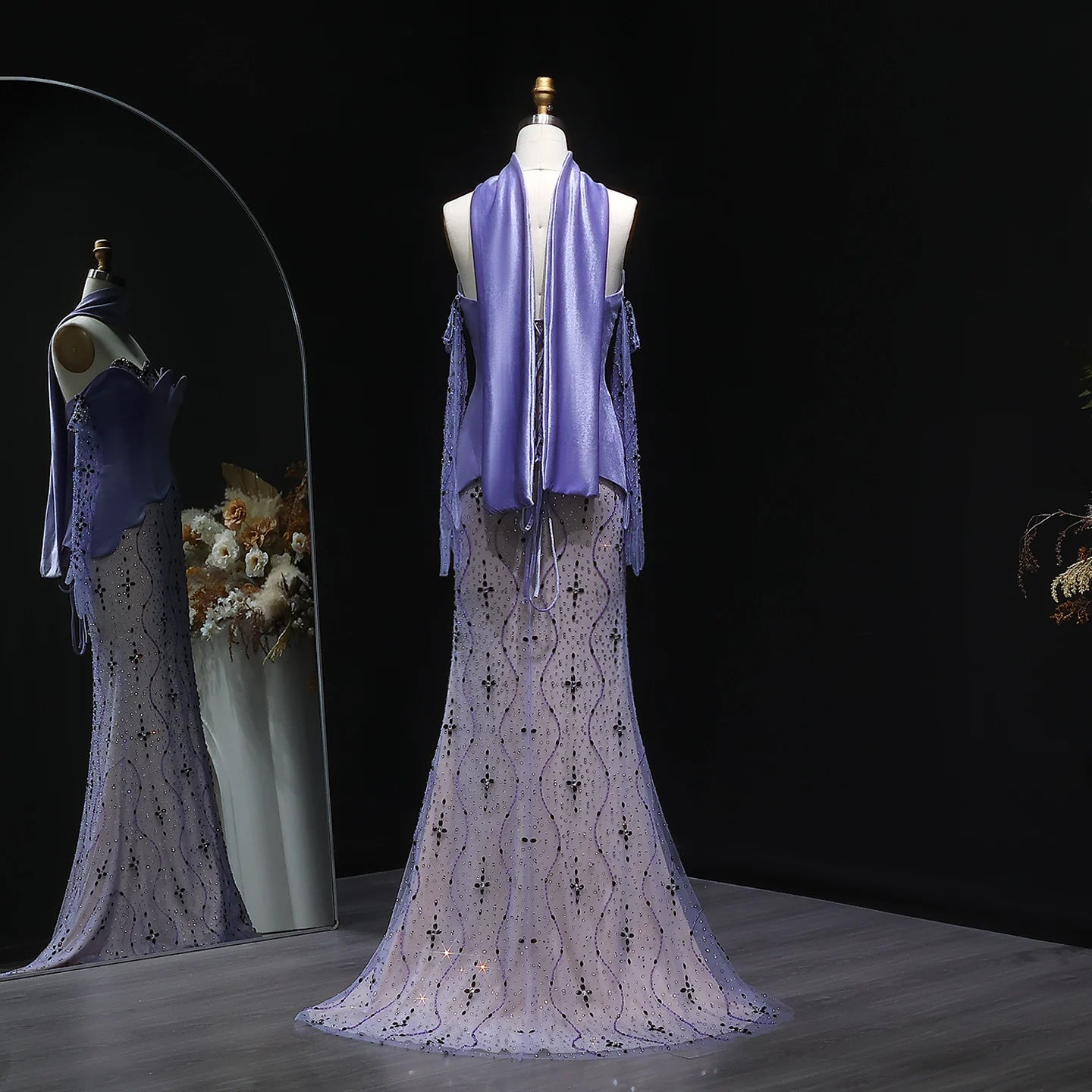 Hazel Two Pieces Purple Velvet Mermaid Evening Dress with Gloves Scarf