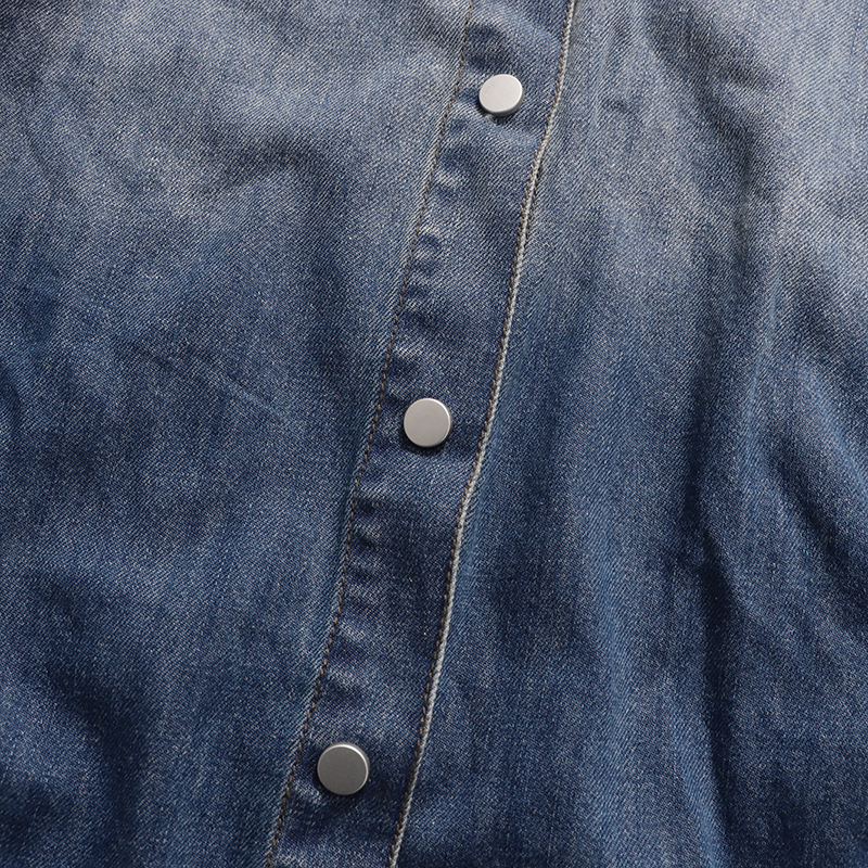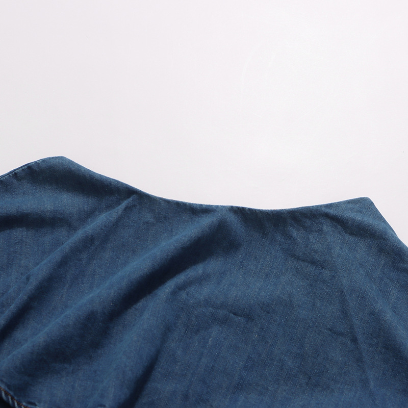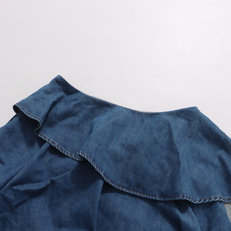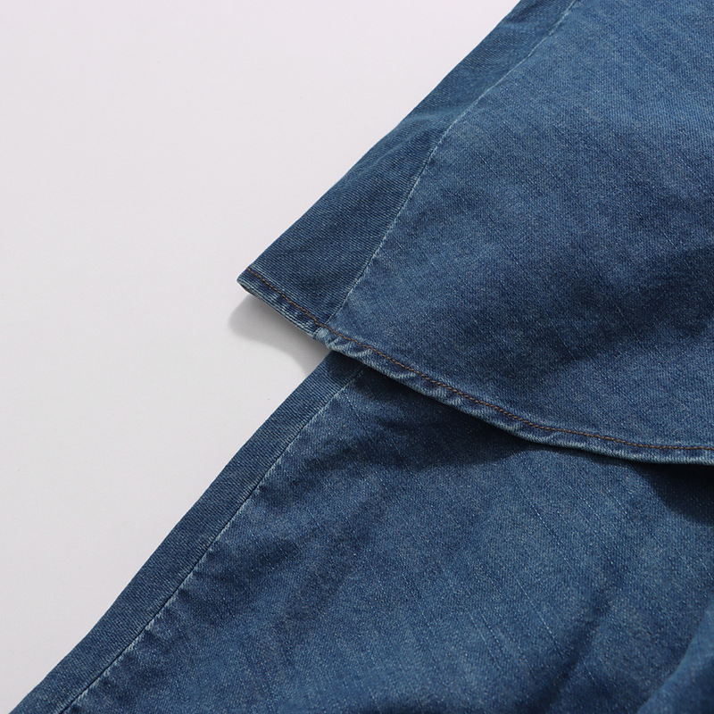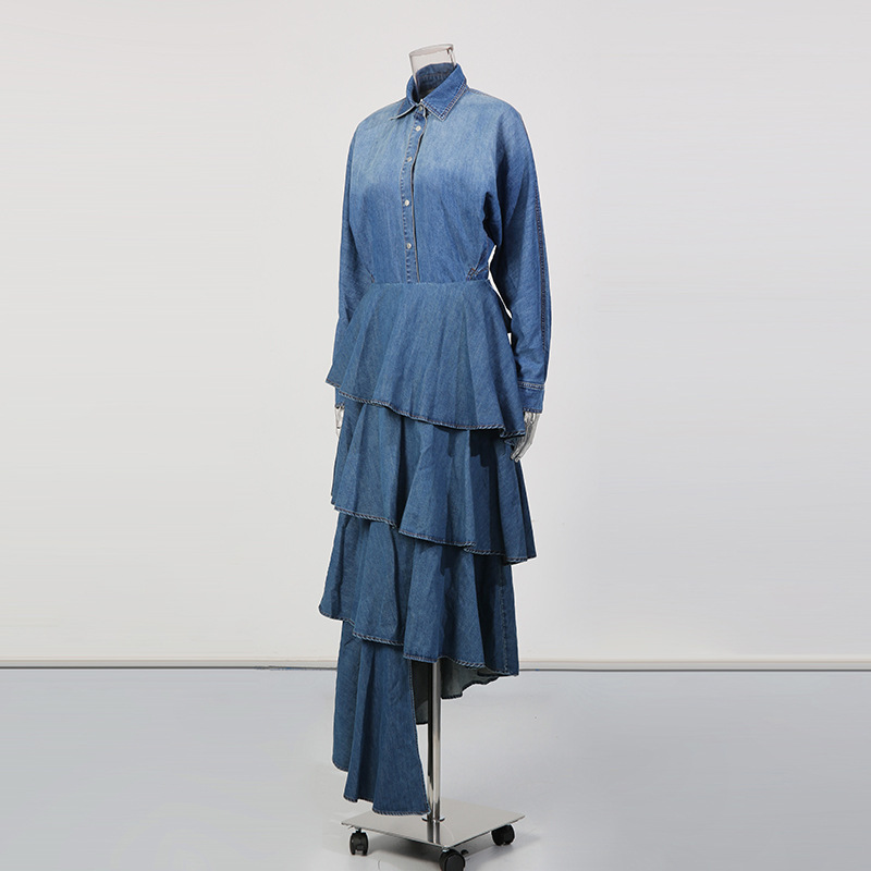 Retro Denim Layered Long Half Skirt+Shirt Two-Piece Set