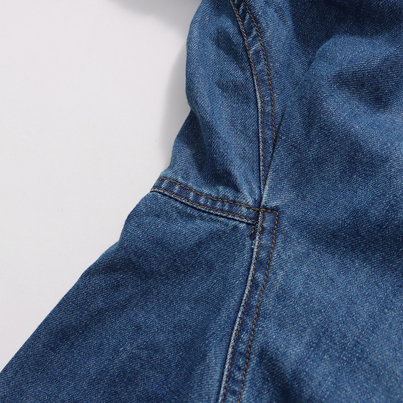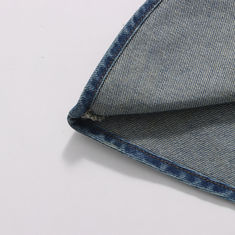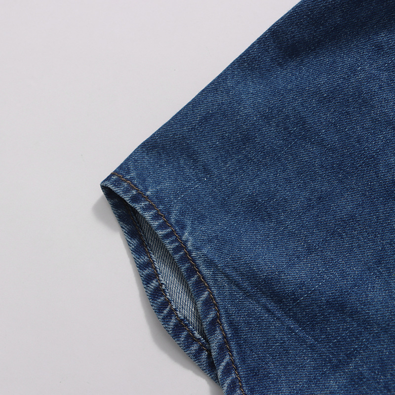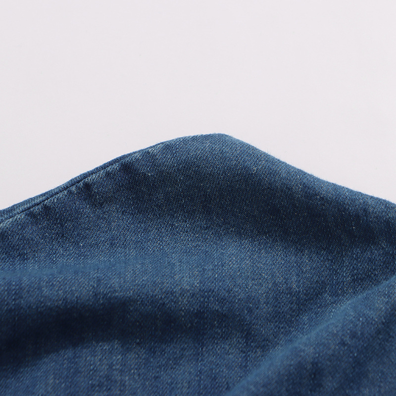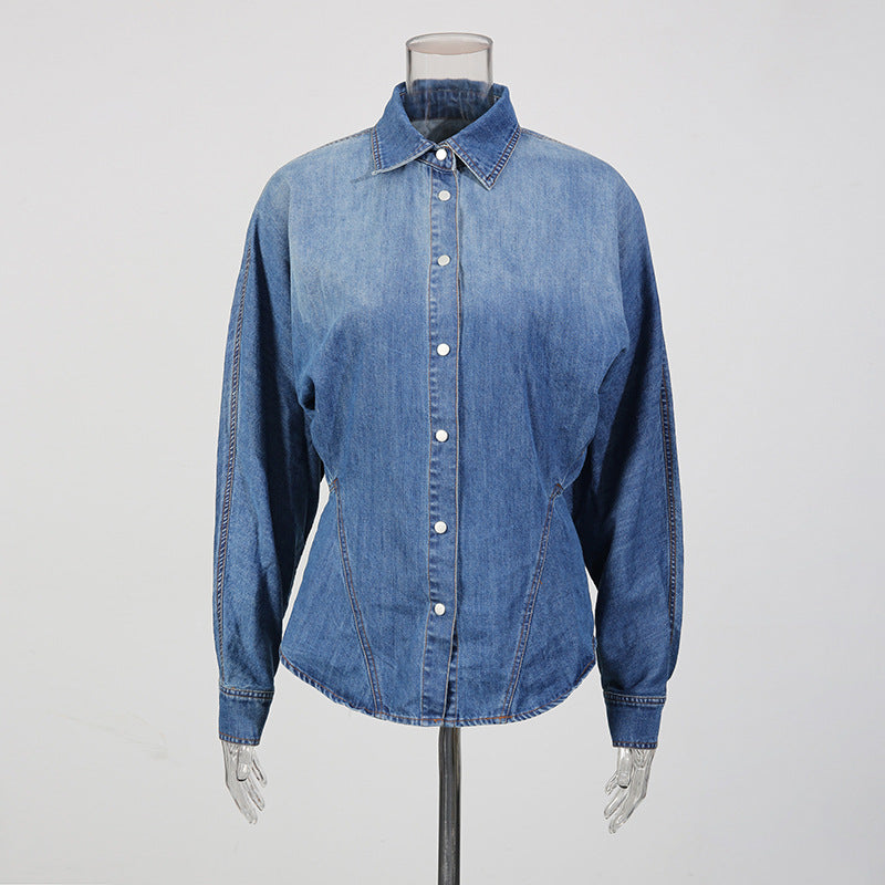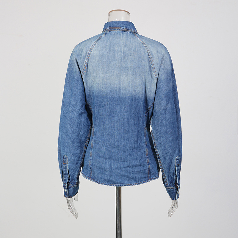 Retro Denim Layered Long Half Skirt+Shirt Two-Piece Set