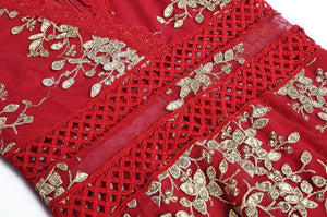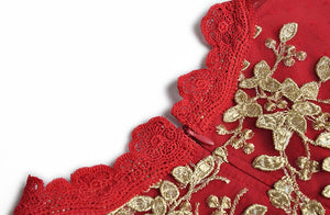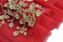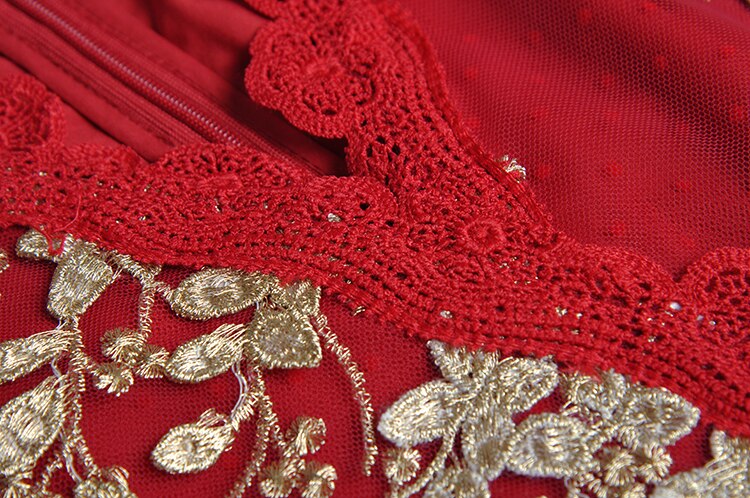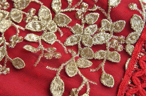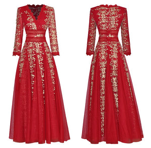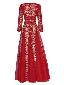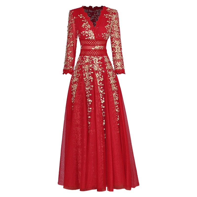 Anna Mesh Dress V-Neck Gold Thread Flowers Embroidery Vintage Party Long Dress