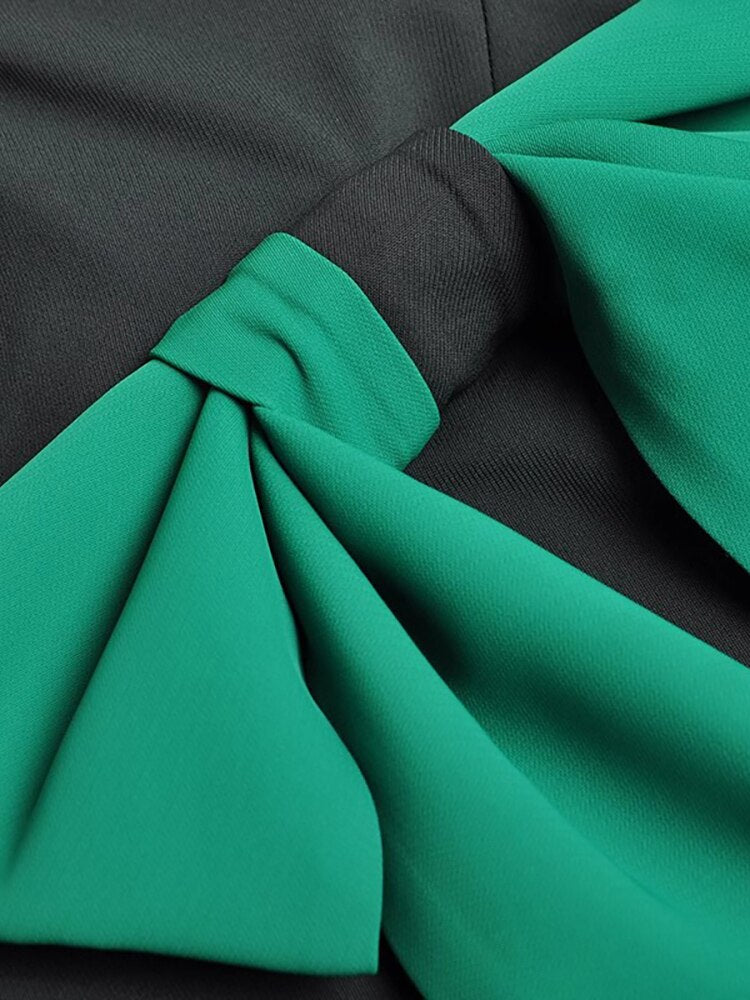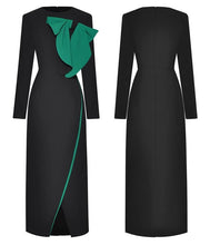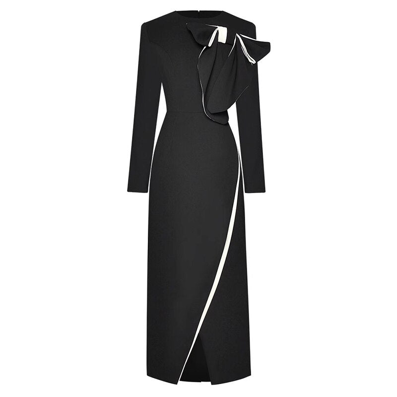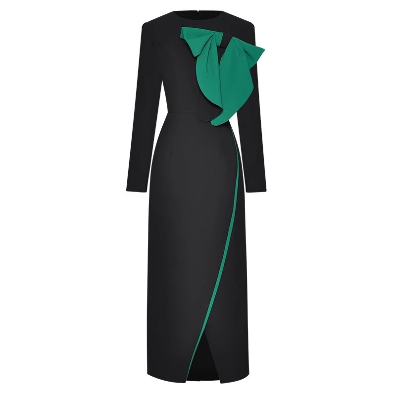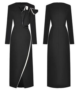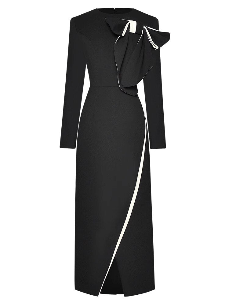 Anne Early Autumn Pencil O-Neck Long Sleeve Bow Office Lady Slit Package Buttocks Dress