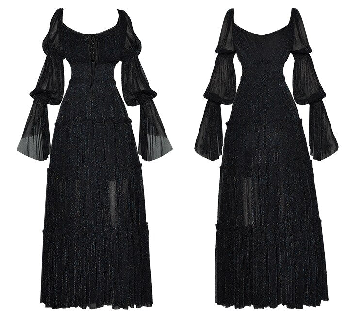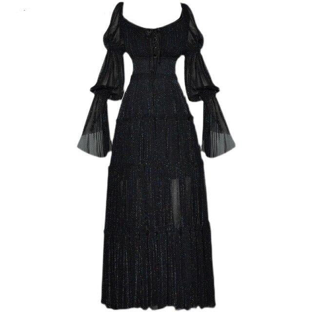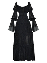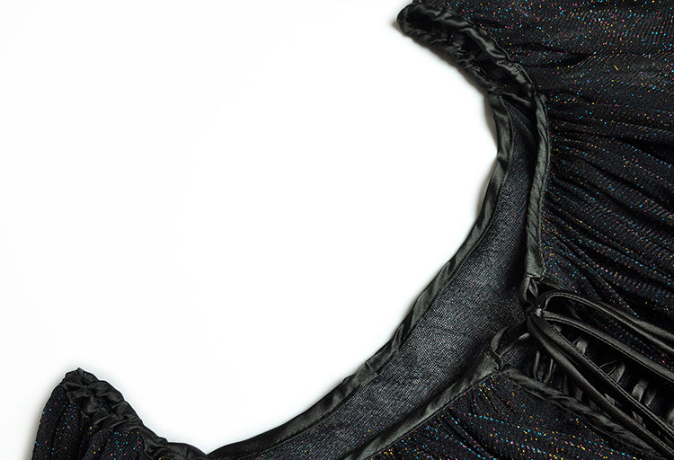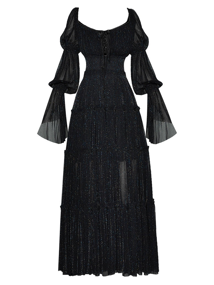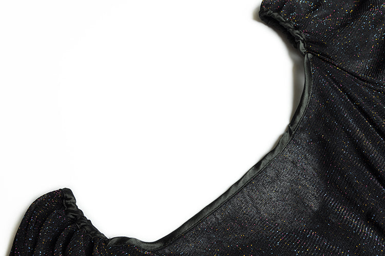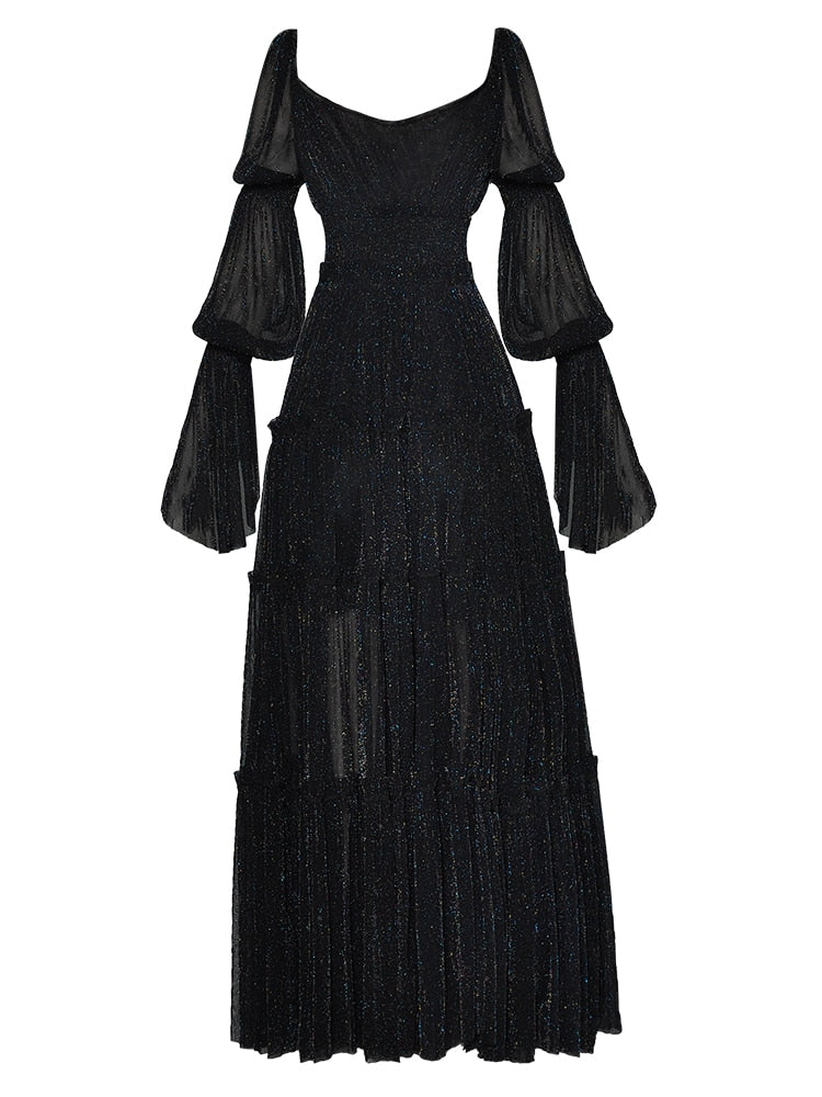 Ariana Square collar Black Flare Sleeve Elastic waist Dress