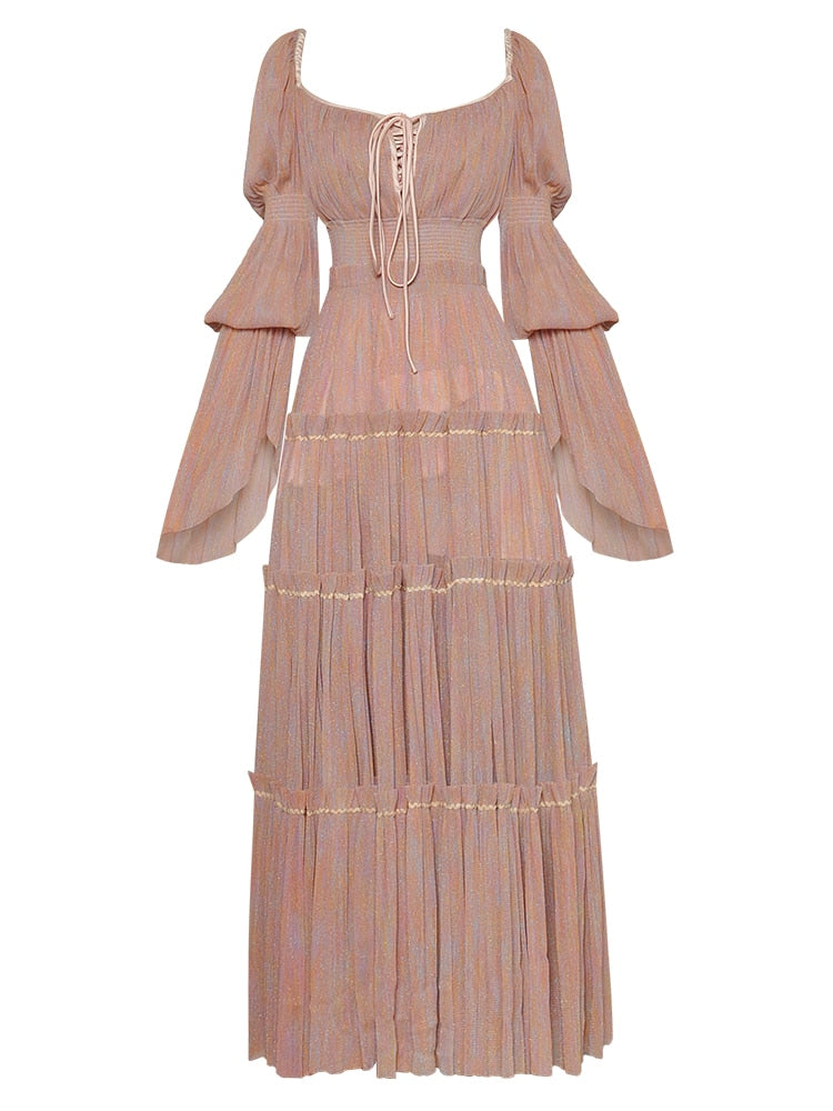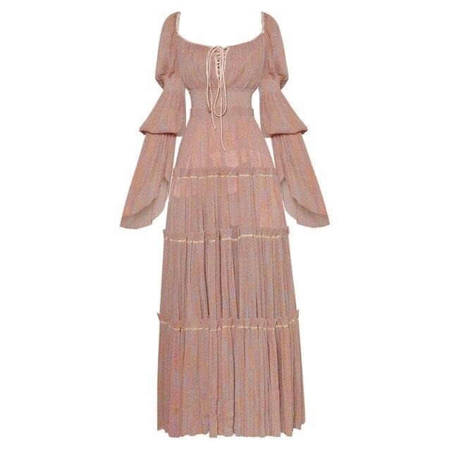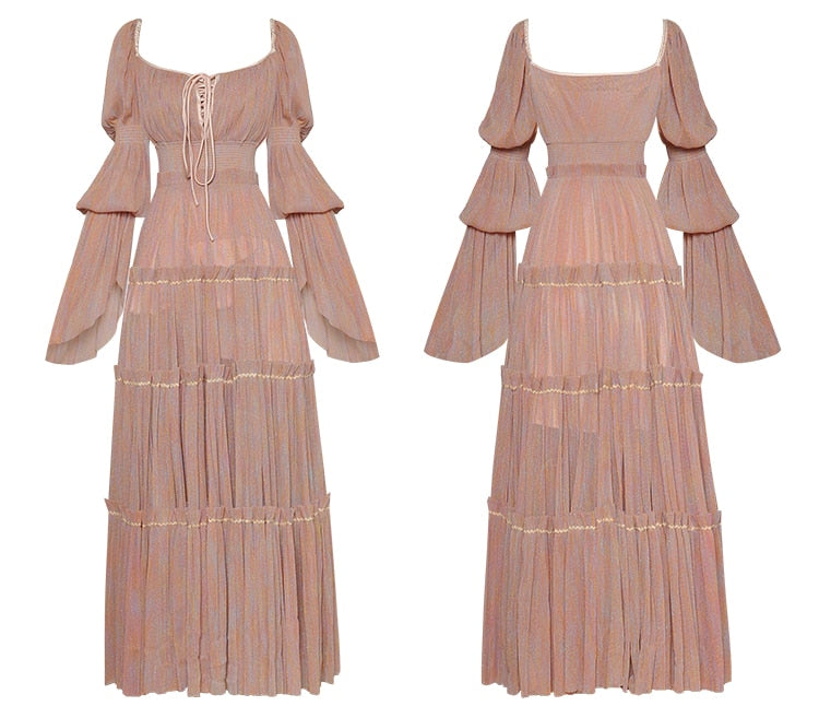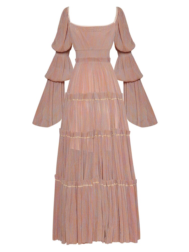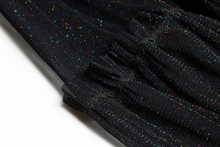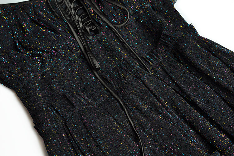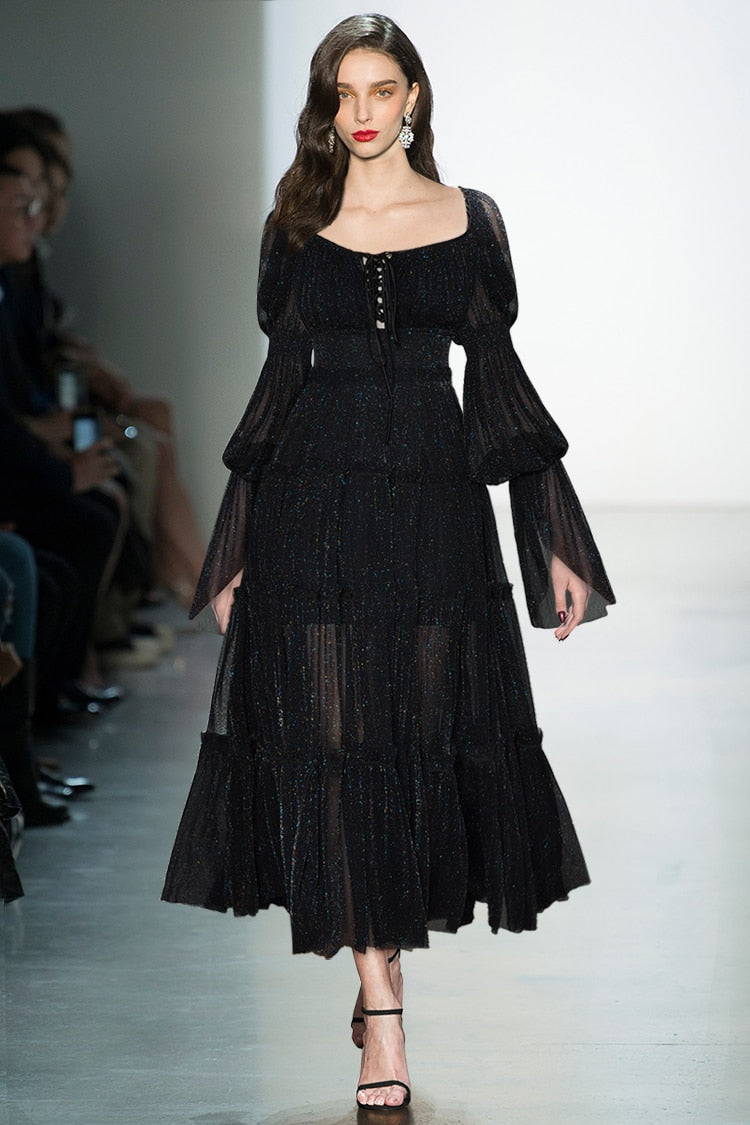 Ariana Square collar Black Flare Sleeve Elastic waist Dress