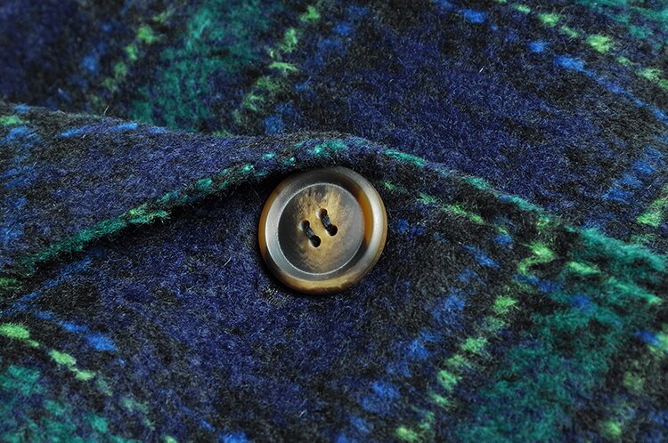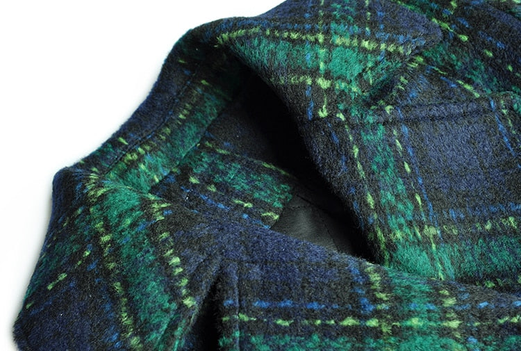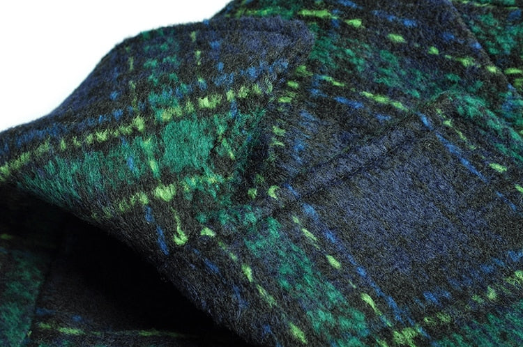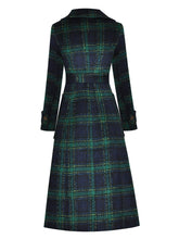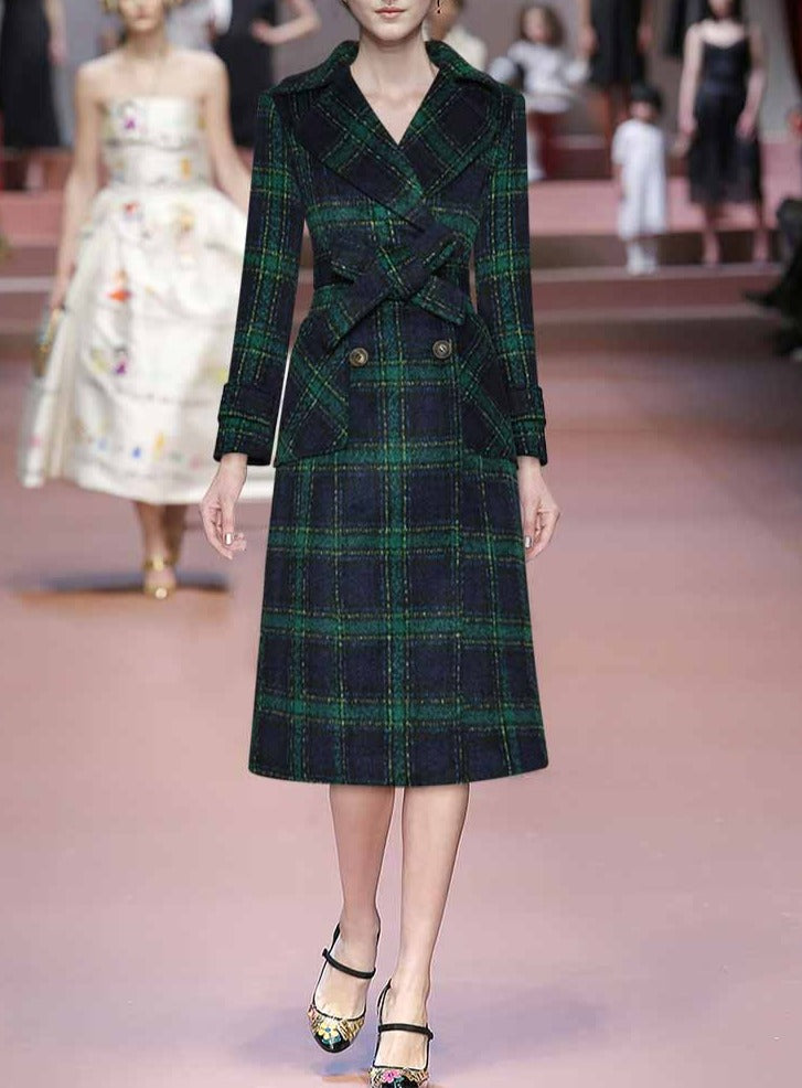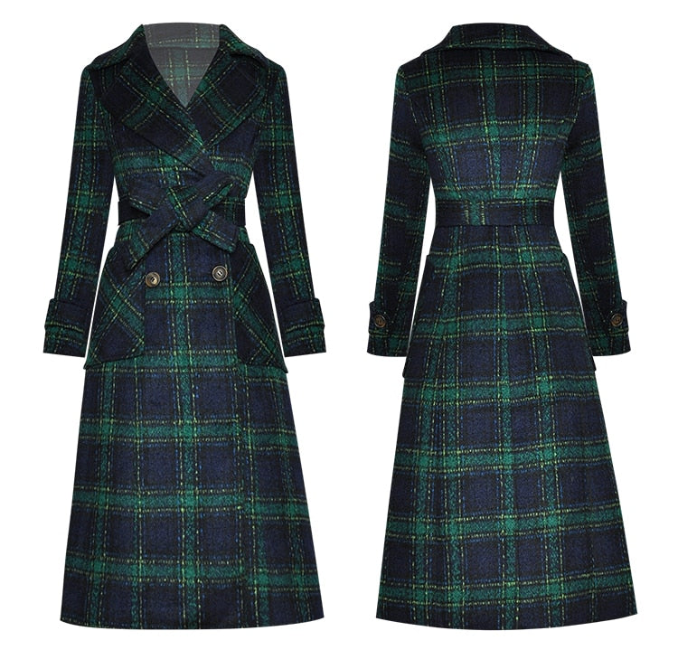 Azar Long sleeve Double breasted lace-up Keep warm Plaid Overcoat