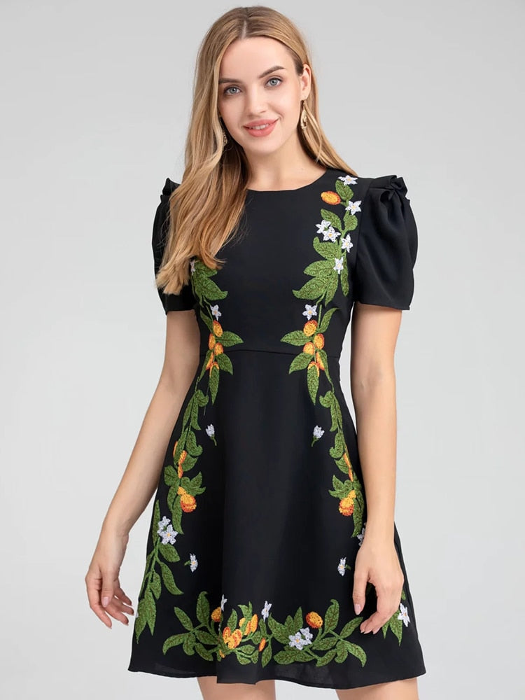 Chelsea Floral Embroidery Fashion Vintage Party Mini Dress