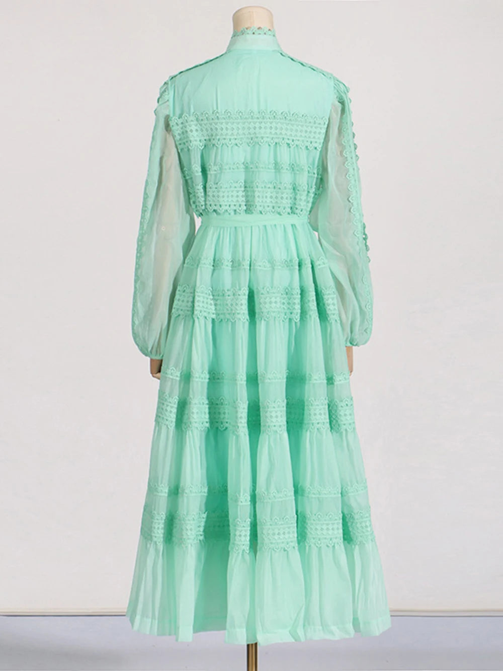 Eva Stand Neck Short Sleeve Lace Up Dress