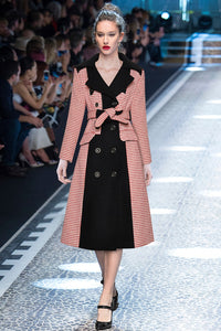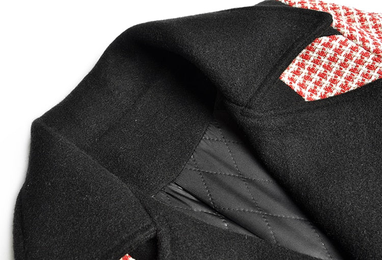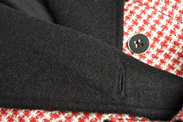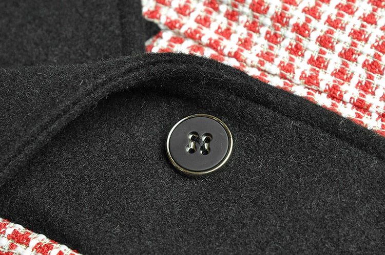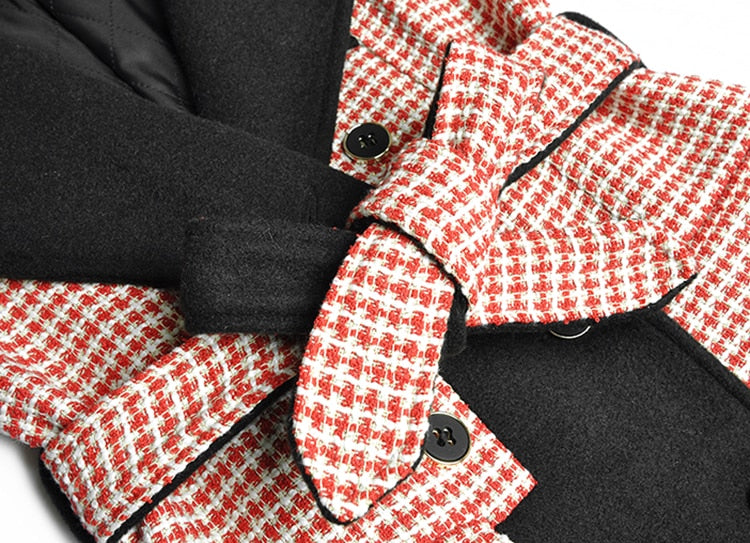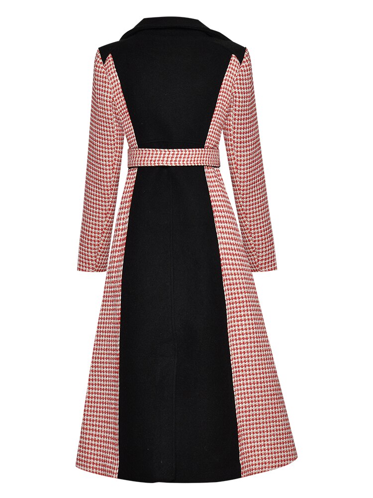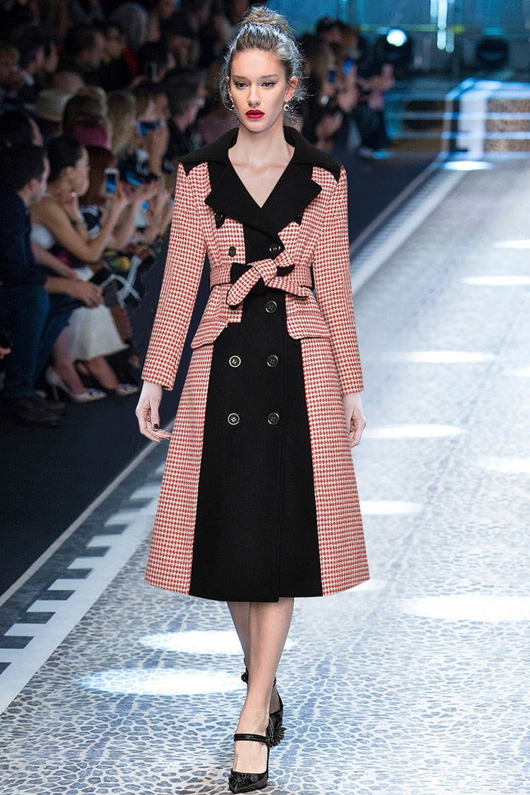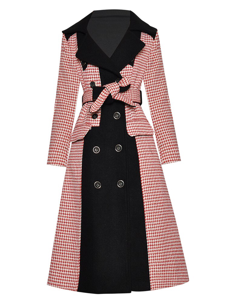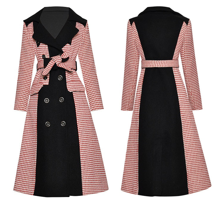 Hound's-tooth Winter Women Long sleeve Double breasted lace-up Overcoat