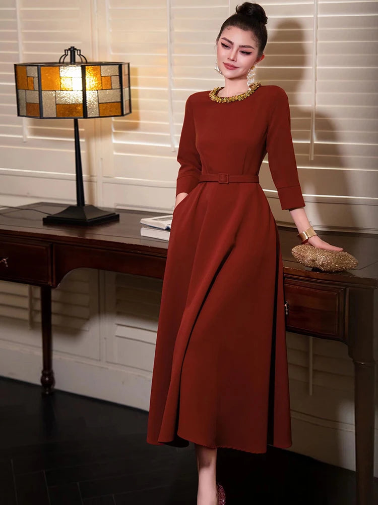 Gala V-Neck Short Sleeve Sashes Pockets Print Chinese Style Dress