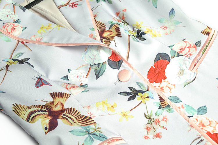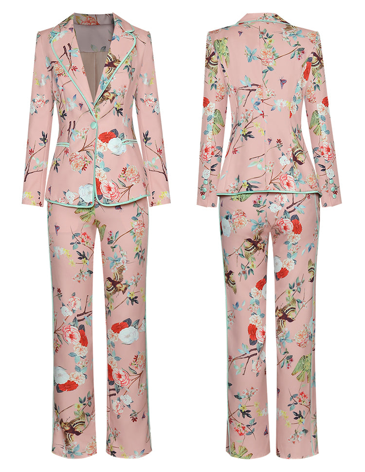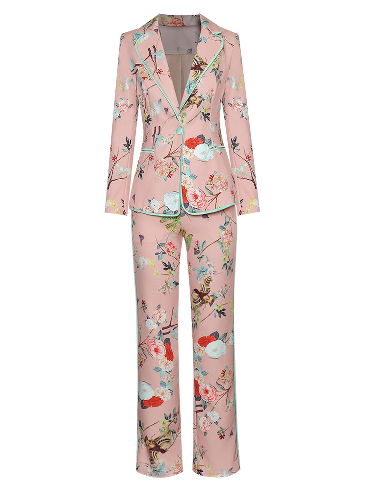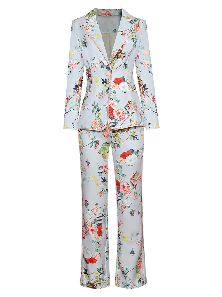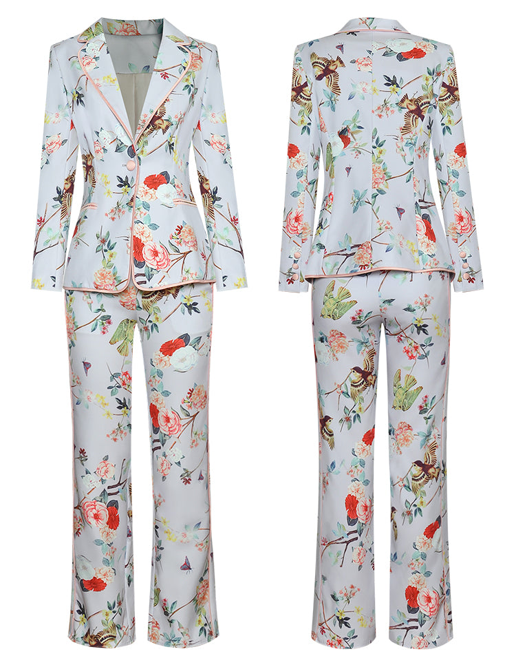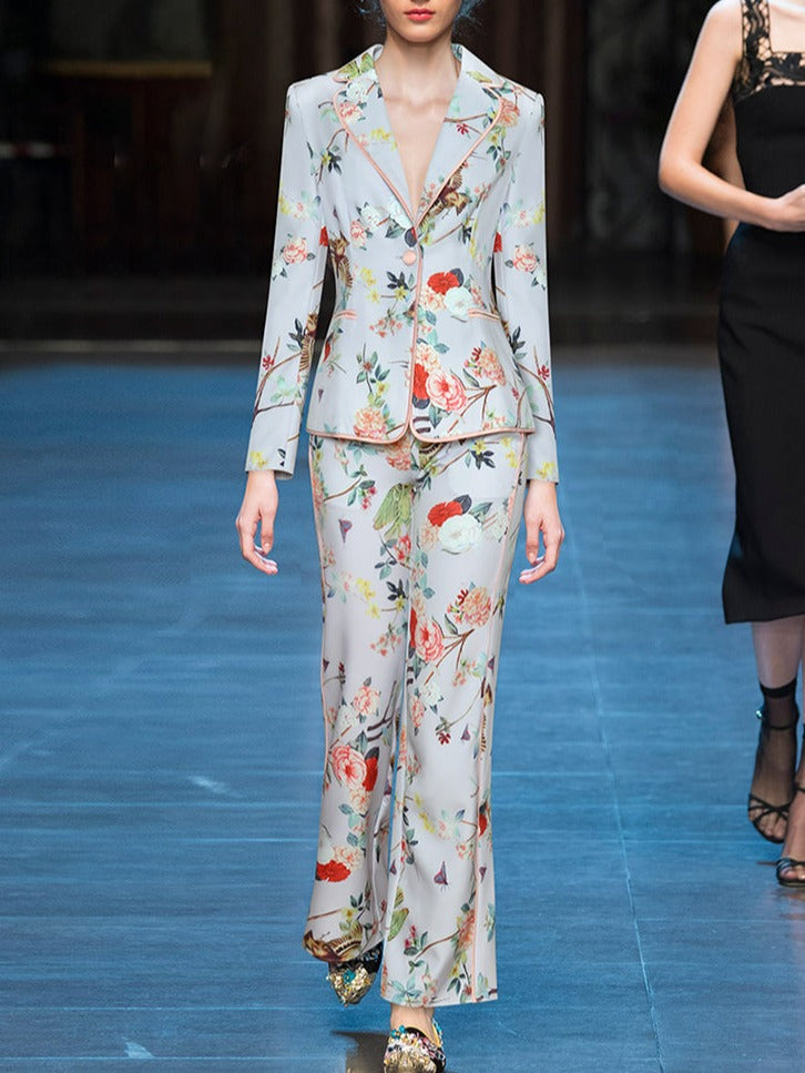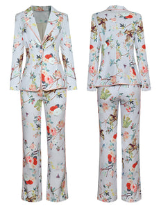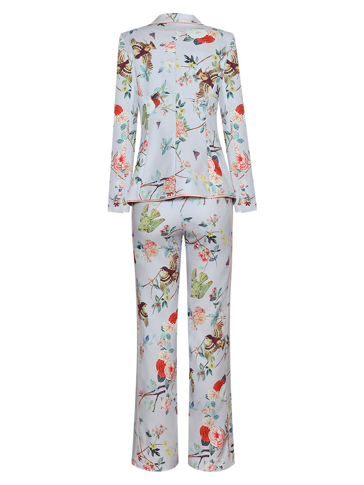 Nadia Blue Notched Long Sleeve Jacket + Pant Set