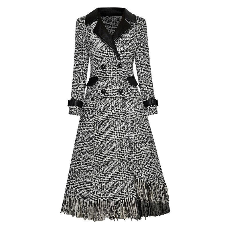 Naz Autumn Winter Double Breasted Asymmetric Tassel Long sleeve Overcoat