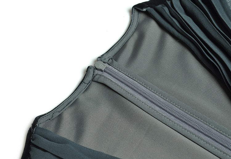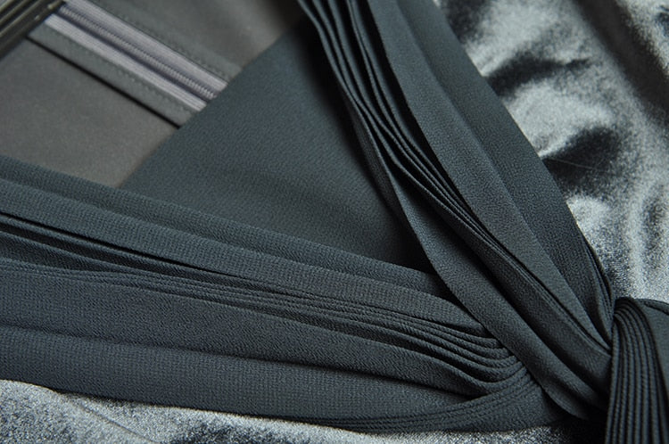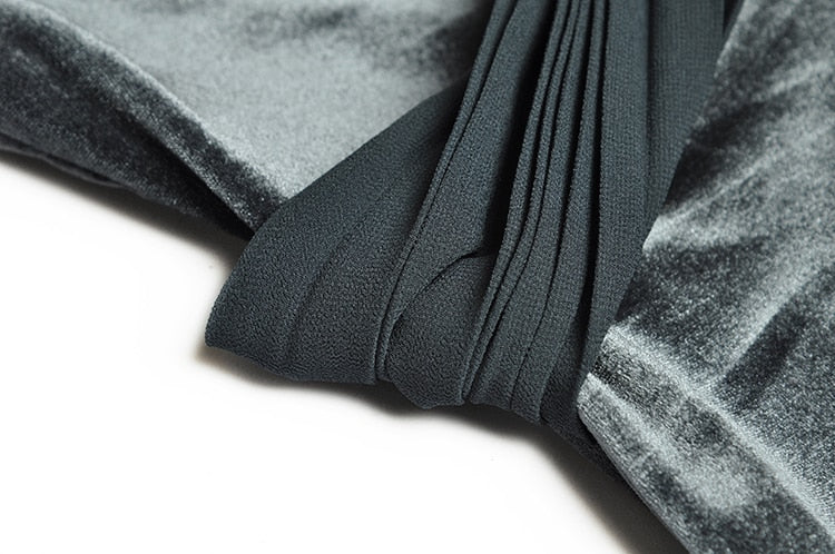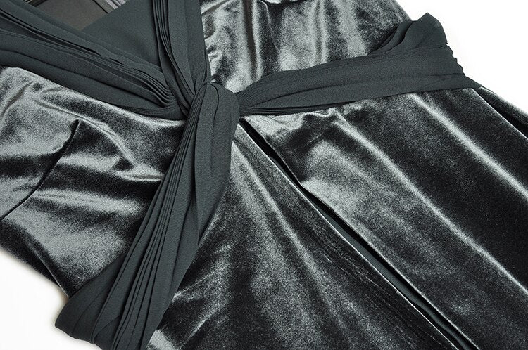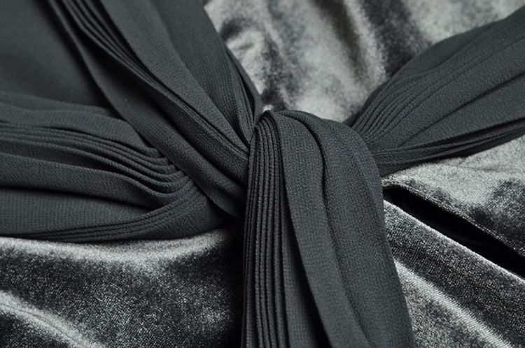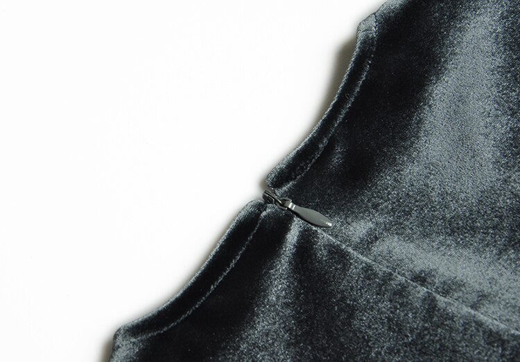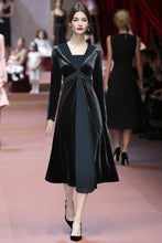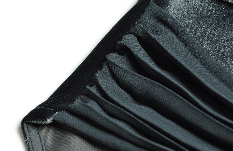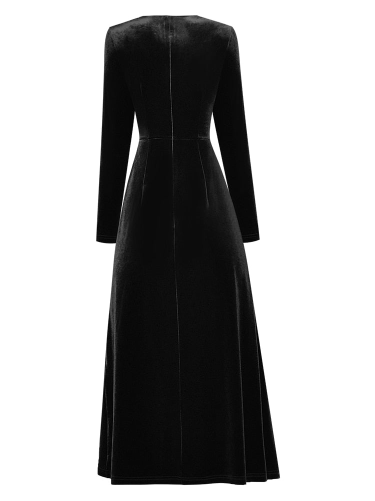 Renata Velvet Midi Dress Women's Square Collar Long Sleeve Patchwork Pleated Party Dress