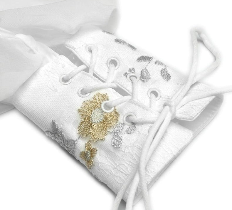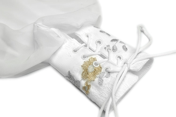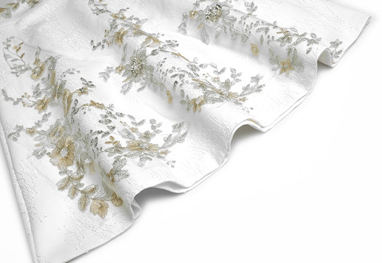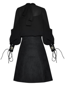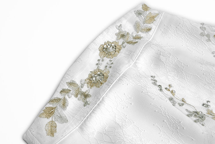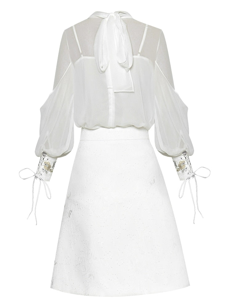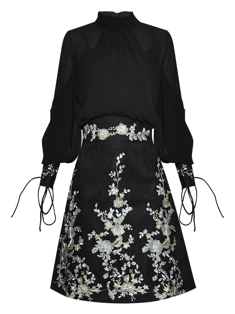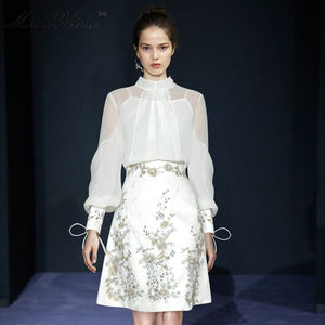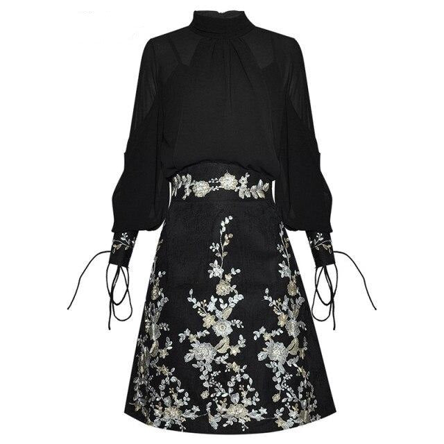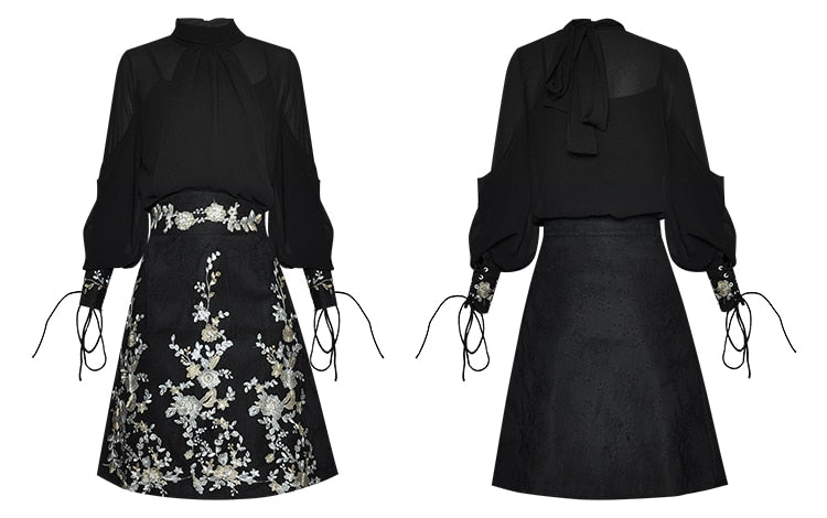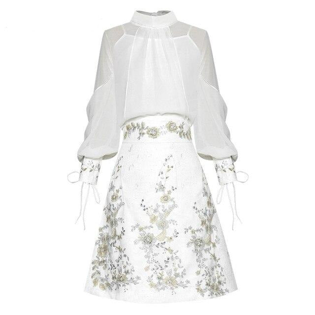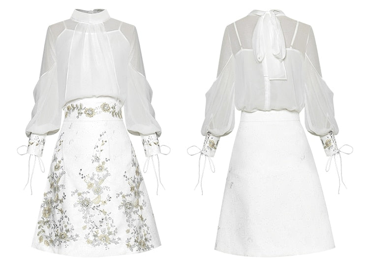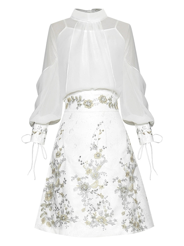 Rizo Sleeve Shirt Tops+Embroidery Sequins Skirt Two-piece set