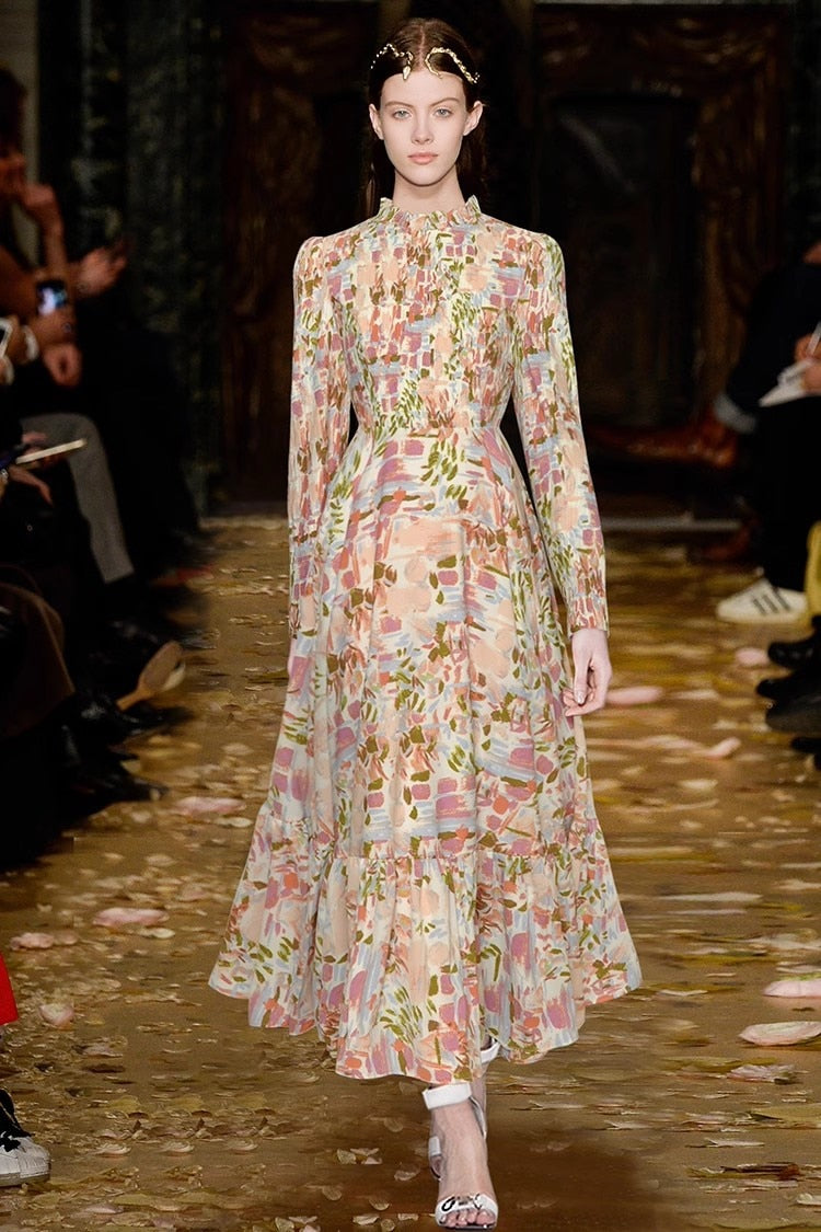 Salem Early Autumn O-Neck Long Sleeve Folds Floral Print Elegant Party Dress