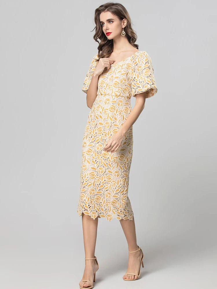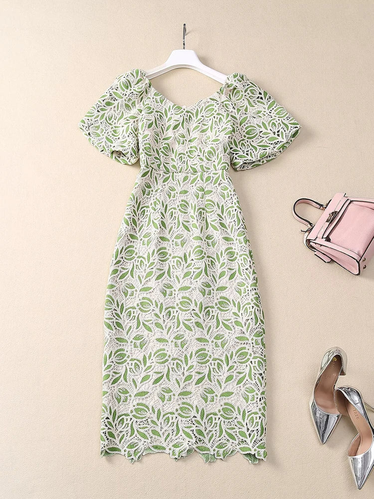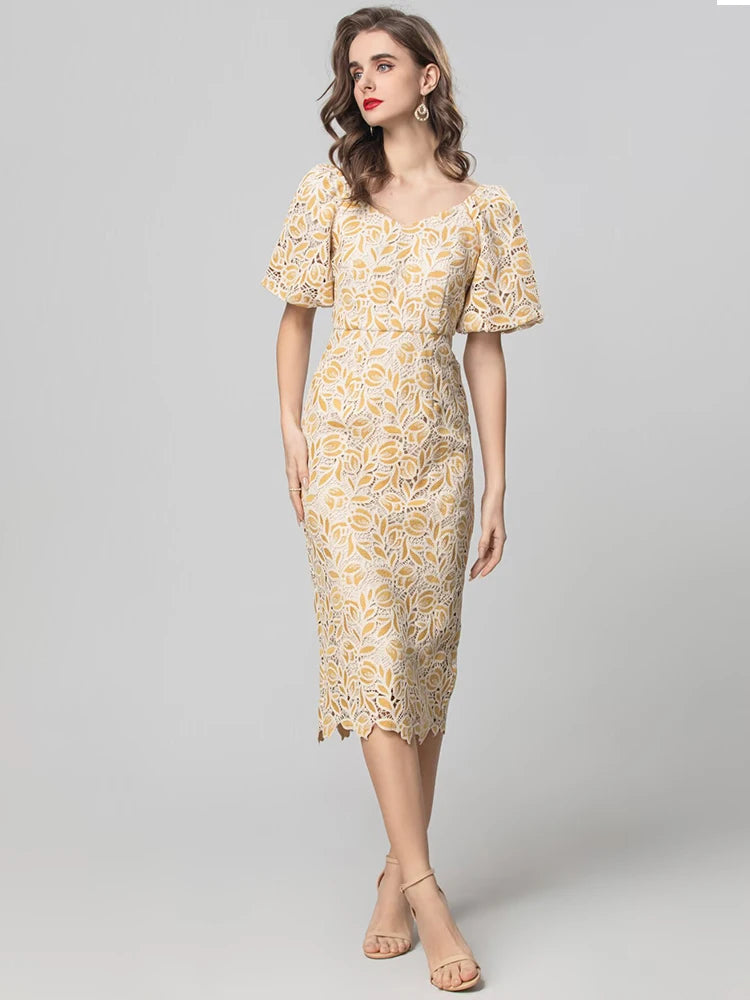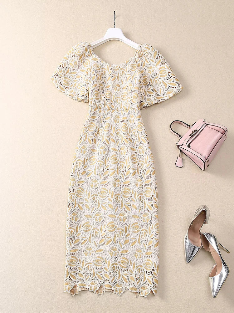 Vivian Vintage Hollow out Embroidery Pencil Dress